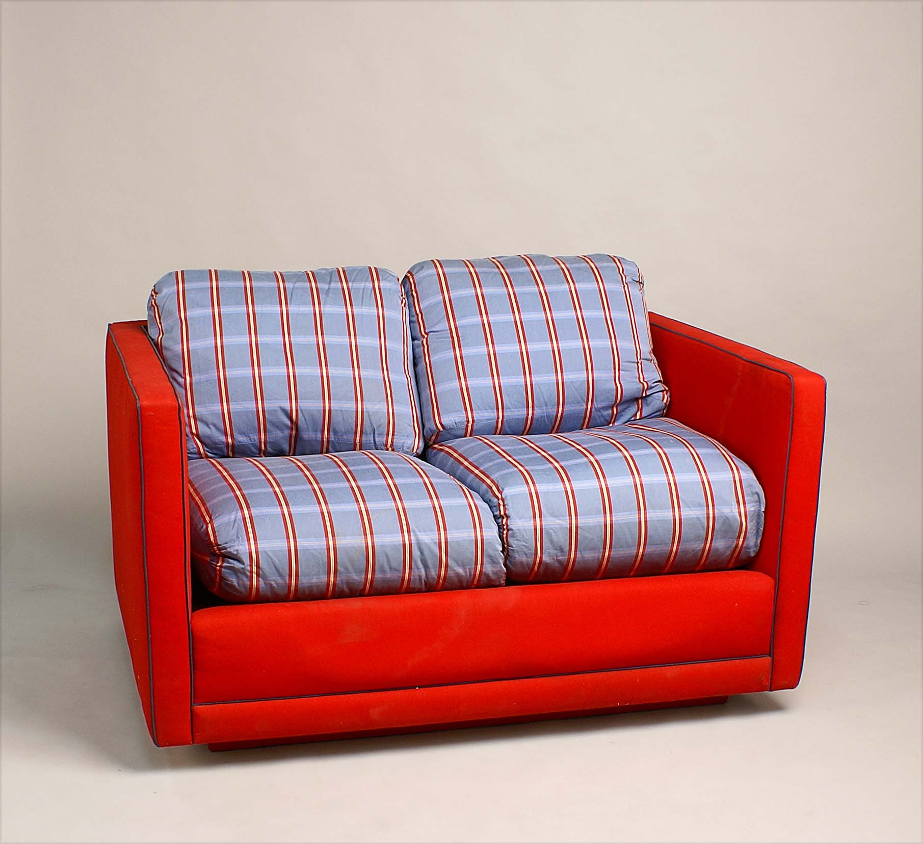 Lotto 986 | Divano a due posti interamente imbottito e rivestito in tessuto, cm. 72x127x88.