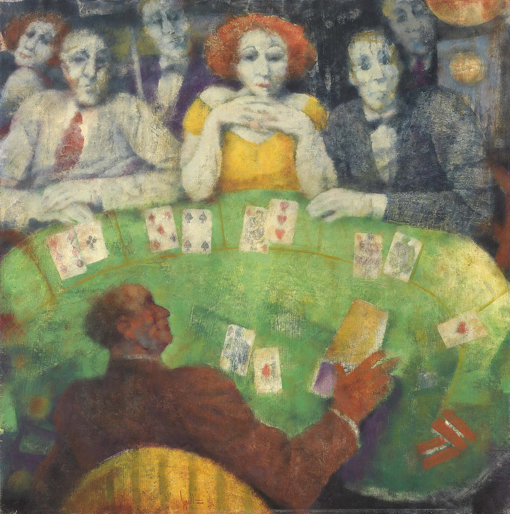Remo Squillantini, Stia (Ar) 1920 - 1996, Black Jack, Olio su tavola, cm....