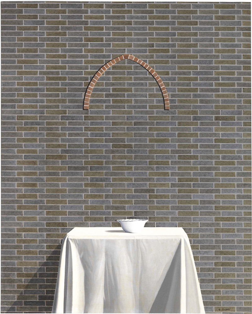 Giorgio Tonelli, Brescia 1941, Cose di tutti i giorni, 1989, Olio su tavola, cm. 50x40, Firma in basso a destra: G. Tonelli; titolo, data e firma al verso: "Cose di tutti i giorni" / 1989 / Giorgio Tonelli: etichetta Galleria dello Scudo / Verona / opera esposta marzo 1993., Foto autenticata dall'artista, Bologna, 22-3-93