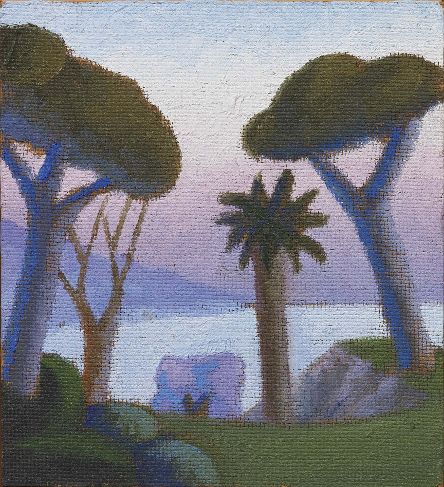 Salvo, Leonforte (En) 1947 - Torino 2015, Senza titolo, 1986, Olio su faesite, cm. 22,3x20,2, Firma e data al verso: Salvo 86., Certificato su foto Archivio Salvo, Torino, 10 marzo 2017, con n. S1986-6