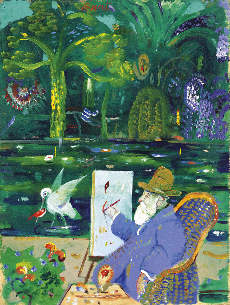 Antonio Possenti, Lucca 1933 - 2016, Un pittore nel bosco, 1996, Olio su tavola, cm. 40x30, Firma in alto al centro: Possenti; firma e titolo al verso: Possenti / Un pittore / nel bosco., Foto autenticata dall'artista su certificato Archivio delle Opere del Maestro Antonio Possenti, con n. 2308