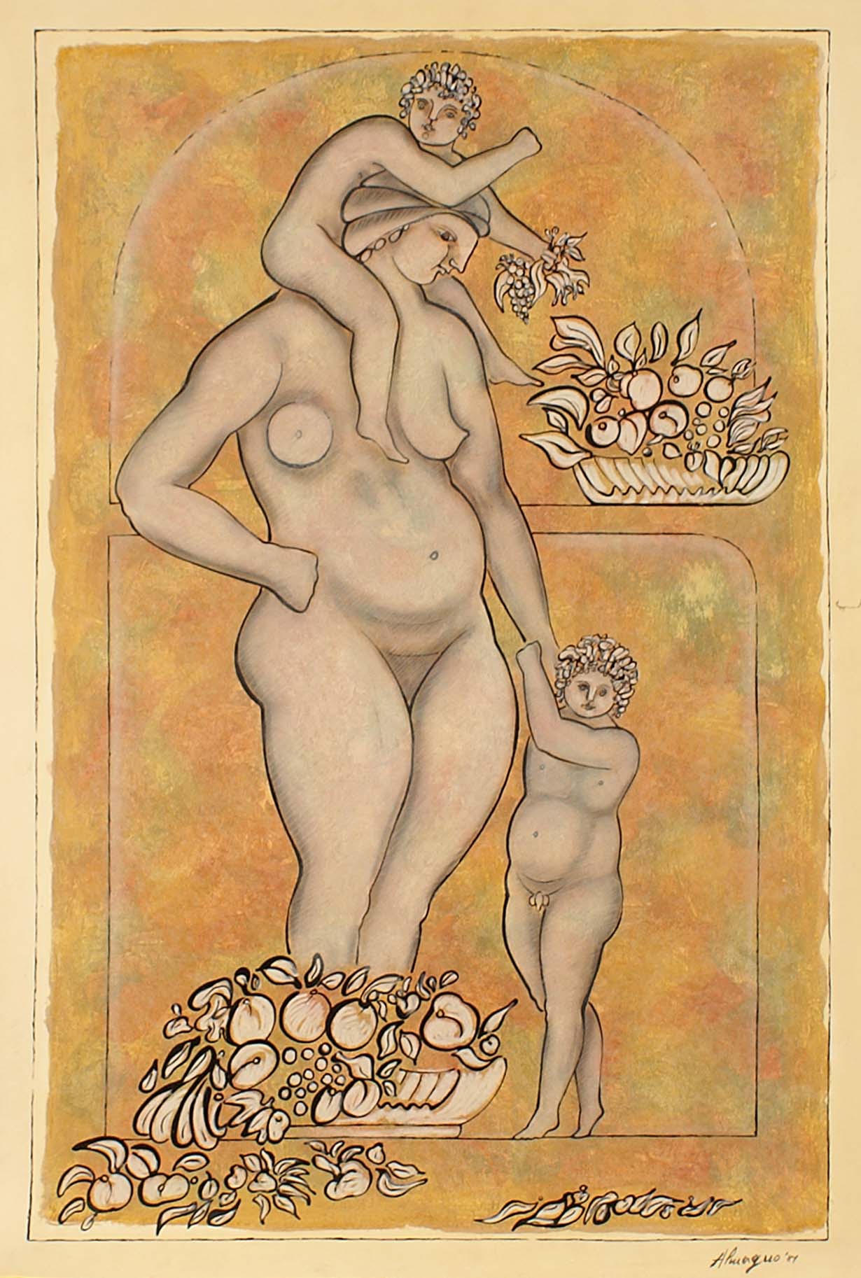 Roberto Almagno (Aquino 1954), "senza titolo", tempera a china su cartoncino, cm. 70x50, firmata e datata 1981 in basso a destra.