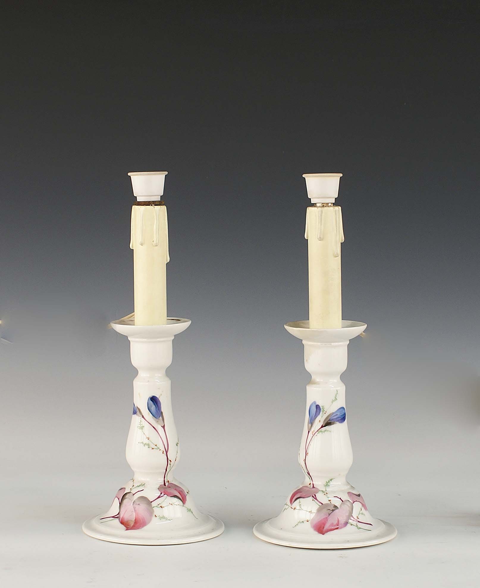 Lotto 1001 | Coppia di abat jour in porcellana bianca e decorata a policromia, vecchia...