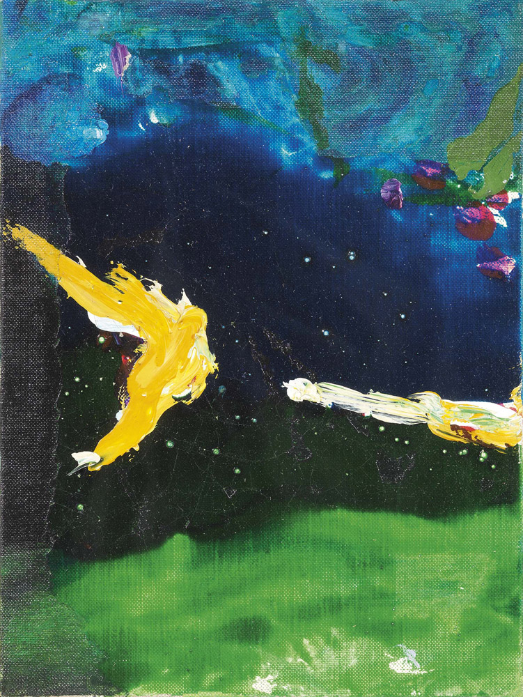 Mario Schifano, Homs 1934 - Roma 1998, Senza titolo, 1988, Smalto e acrilico su tela, cm. 24x18, Firma e data al verso sulla tela: Schifano / 88., Foto autenticata dall'artista. Certificato su foto Fondazione Mario Schifano. Archivio Generale dell'Opera di Mario Schifano, Roma, 10 novembre 2006, con n. 88/613., Bibliografia: Studio metodologico riguardante la catalogazione informatica dei dati relativi alle opere di Mario Schifano presenti presso la Fondazione M.S. Multistudio. Vol. A)II° Opere su tela 1983-1990/97, Università degli Studi di Genova, 2007, p. 278, n. 88/613