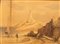 Firma indecifrabile, "Paesaggio marino con faro", acquarello su cartoncino...