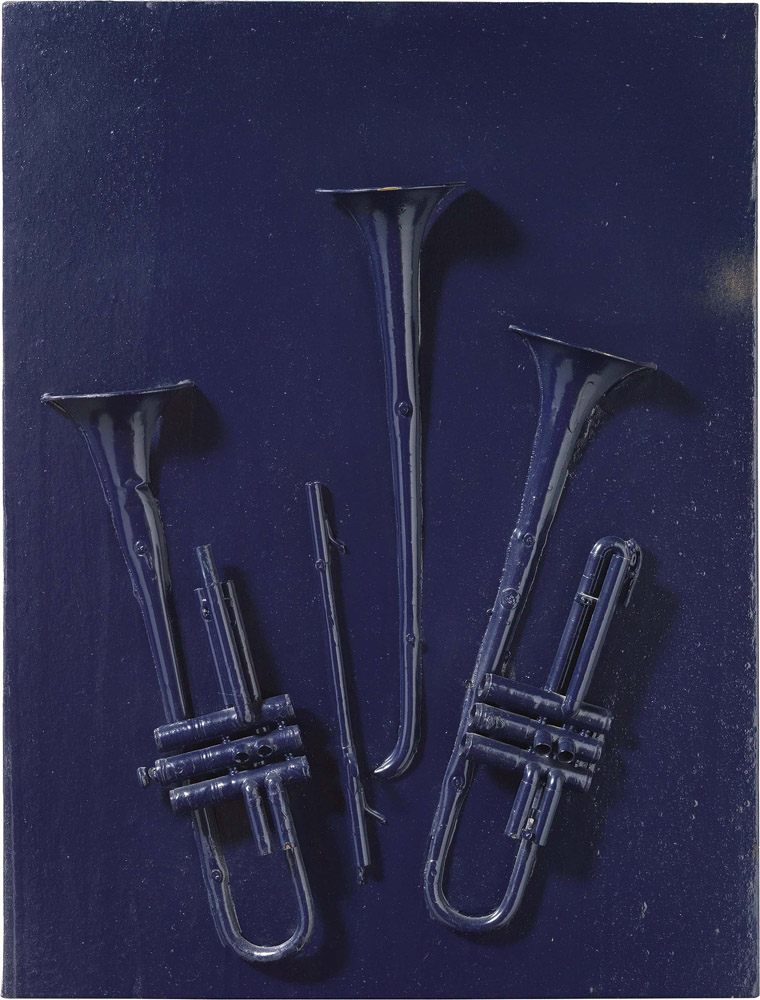 Arman, Nizza 1928 - 2005, Senza titolo, 1998, Trombe tagliate e acrilico su...