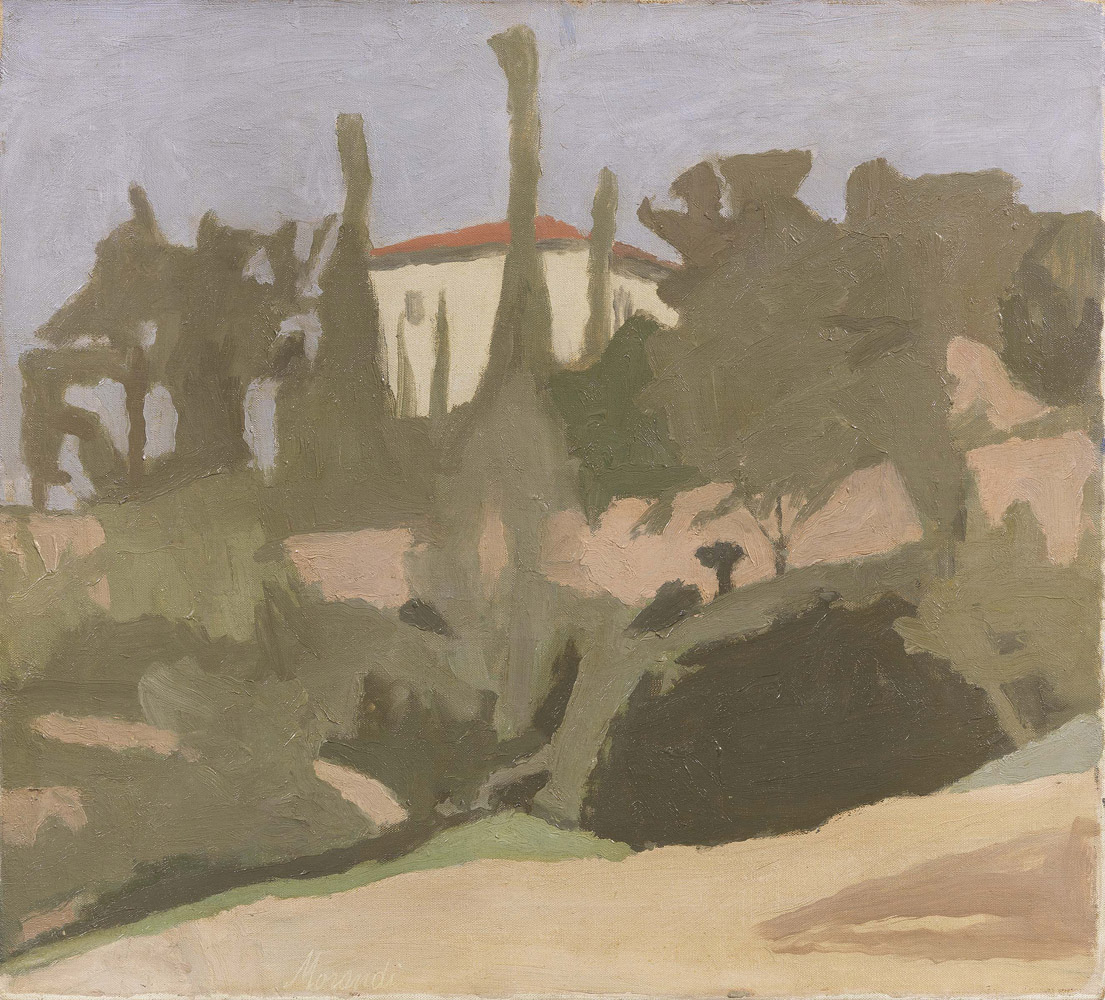 Giorgio Morandi, Bologna 1890 - 1964, Paesaggio, 1942, Olio su tela, cm. 49x54, Firma in basso a sinistra: Morandi. Al verso sul telaio: etichetta e timbro Galleria del Milione, Milano, con n. 9865: etichetta e timbri Galleria La Bussola, Torino: etichetta Comune di Ferrara - Palazzo dei Diamanti / Mostra G. Morandi: cartiglio con n. 10011 e scritta Avv. Saviane: timbro La Casa dell'Arte, Sasso Marconi; sulla tela e sul telaio: timbri La Loggia "Galleria d'Arte"., Storia: Galleria La Loggia, Bologna; Galleria La Bussola, Torino; Galleria Galatea, Torino; Collezione Zegna, Biella; Galleria Medea, Milano; Galleria del Milione, Milano; Galleria Ketterer, Campione; Collezione Saviane, Firenze; Collezione Severi, Carpi; Collezione privata, Esposizioni: Omaggio a Morandi, Cortina d'Ampezzo, Centro d'Arte Dolomiti, 2 dicembre 1969 - 10 gennaio 1970, cat. n. VIII, illustrato;, Giorgio Morandi, Ferrara, Palazzo dei Diamanti, 1 luglio - 8 ottobre 1978, cat. n. 29, illustrato a colori;, Giorgio Morandi "Magia del paesaggio", Cortina d'Ampezzo, Galleria d'Arte Frediano Farsetti, 8 agosto - 3 settembre 2000, cat. n. 7, illustrato a colori., Bibliografia: Efrem Tavoni, Omaggio a Giorgio Morandi, catalogo della mostra, La Casa dell'Arte, Sasso Marconi, 1977, p. n.n.;, Lamberto Vitali, Morandi. Catalogo generale, volume primo, 1913-1947 seconda edizione, Electa Editrice, Milano, 1983, n. 388;, Pietro Bonfiglioli, Silvia Evangelisti, Fondazione Umberto Severi, III. Pittura contemporanea, Franco Cosimo Panini Editore, Modena, 1993, p. 61., Attestato di libera circolazione richiesto