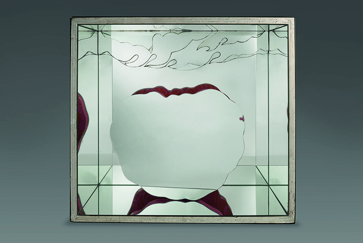 E. Sanguineti, Parma 1968, tav. 150 Wood and shaped mirror, acrylic paint on the back of the tomato
