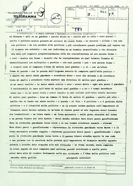 PIERPAOLO CALZOLARI (1943) Senza titolo (Il treno - Telegrammi), 1976 Lavoro...