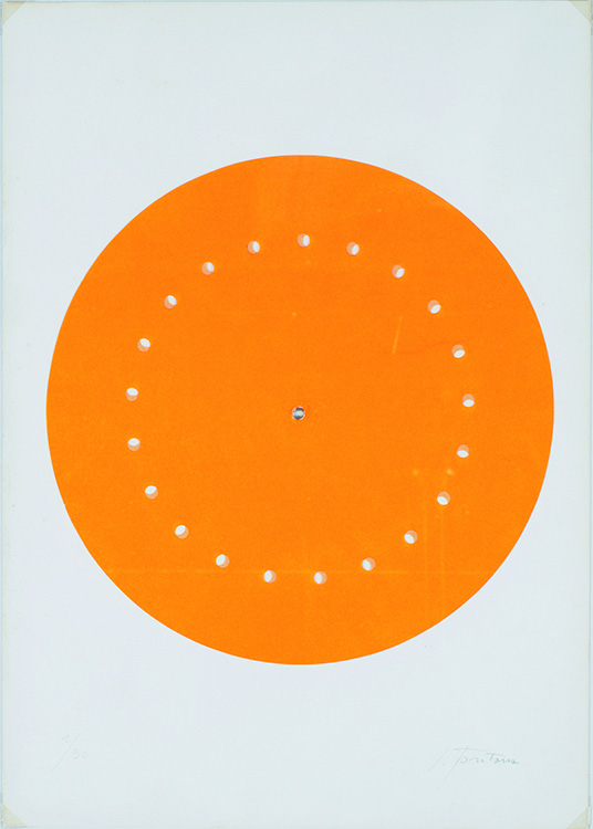 LUCIO FONTANA (1899 - 1968) Disco spaziale, s.d. anni '60 Disco in cartoncino...