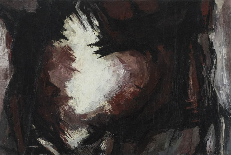 Gualtiero Nativi ( Pistoia 1921 Greve in Chianti (Fi) 1999 ) Minaccia 1962 Olio e smalto su tela, cm. 65x95 Firmato in baso a sinistra. Autentica dell'Archivio Gualtiero Nativi su foto con timbro a secco, firma "Berto Nativi" e Archivio n° 6217.