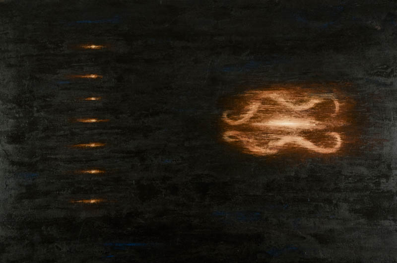 Omar Galliani ( Montecchio Emilia (Re) 1954 ) In cosa leggera 1990 Olio su tela, cm. 100x150 Sul verso: firma, data e titolo. Etichetta di provenienza. Autentica dell'Artista su foto.