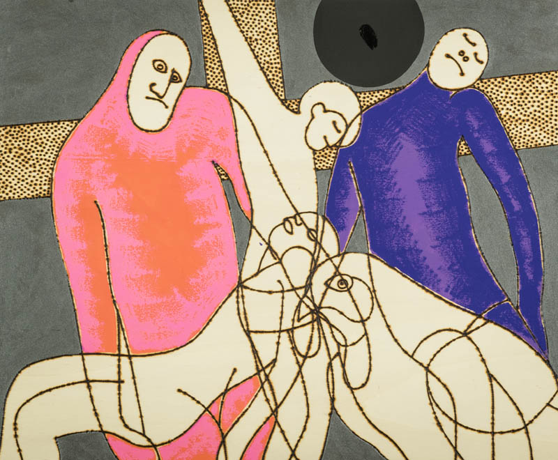 Concetto Pozzati ( Vò di Padova 1935 ) De Posizione 2006 Smalto e acrilico su tavola pirografata, cm. 50x60. Sul verso: firma, data e titolo. Bibliografia: Maria Paola Poponi "Concetto Pozzati Archivio Generale - IV Tomo", Maretti editore, 2012, pag. 168,Archiviato con il n° 2225. Bibliografia: "Concetto Pozzati - De Posizione", Cristian Maretti Editore, pag. 48. Autentica dell'Archivio Generale Concetto Pozzati su foto con Archivio n° 2225/11.