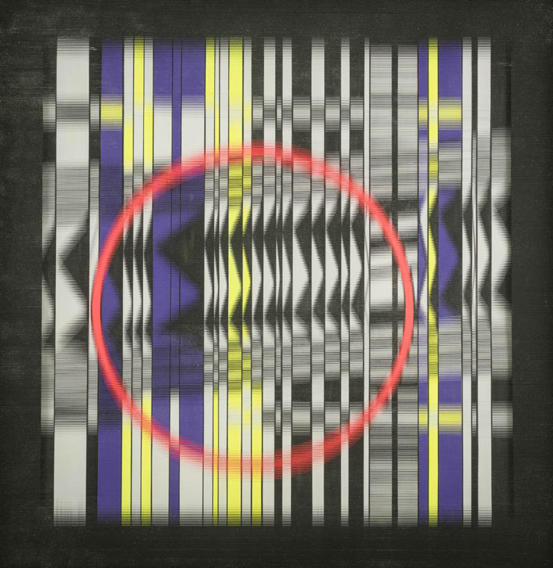 Guido Baldessari ( Venezia 1938 ) Struttura vibrante 1975 Tecnica mista su cartoncino con copertura in plexiglas zigrinato a linee orizzontali, cm. 50x50, in teca di cm. 61x61 Sul verso: firma, data e titolo, Etichetta e Timbri dell'Artista con descrizione; Bibliografia: "Guido Baldessari", a cura di Artetivù, pag. 43. Autentica dell'Artista con foto, timbro e Archivio n° stvi1975-2.