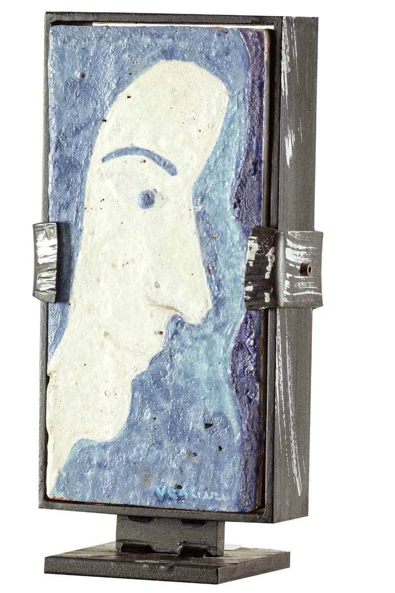 Venturino Venturi ( Loro Ciuffenna (Ar) 1918 2002 ) Volto di donna Mattone invetriato, cm. 25,5x13,5x6 su base di ferro Firmato in basso a destra. Sul verso: timbro "Archivio Venturino Venturi con Archivio n° 528". Bibliografia: Lucia Fiaschi "Venturino Venturi, Catalogo Generale Volume I",Carlo Cambi editore, pag. 108, n° 30 Autentica della Dott.ssa Lucia Fiaschi, su foto, con Archivio n° 528.