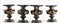 MANIFATTURA VENETA DEL XVIII SECOLO Gruppo di 4 candelieri in legno scolpito, dorato ed ebanizzato. . Cm 8,50 x 11,50 x 8,50.