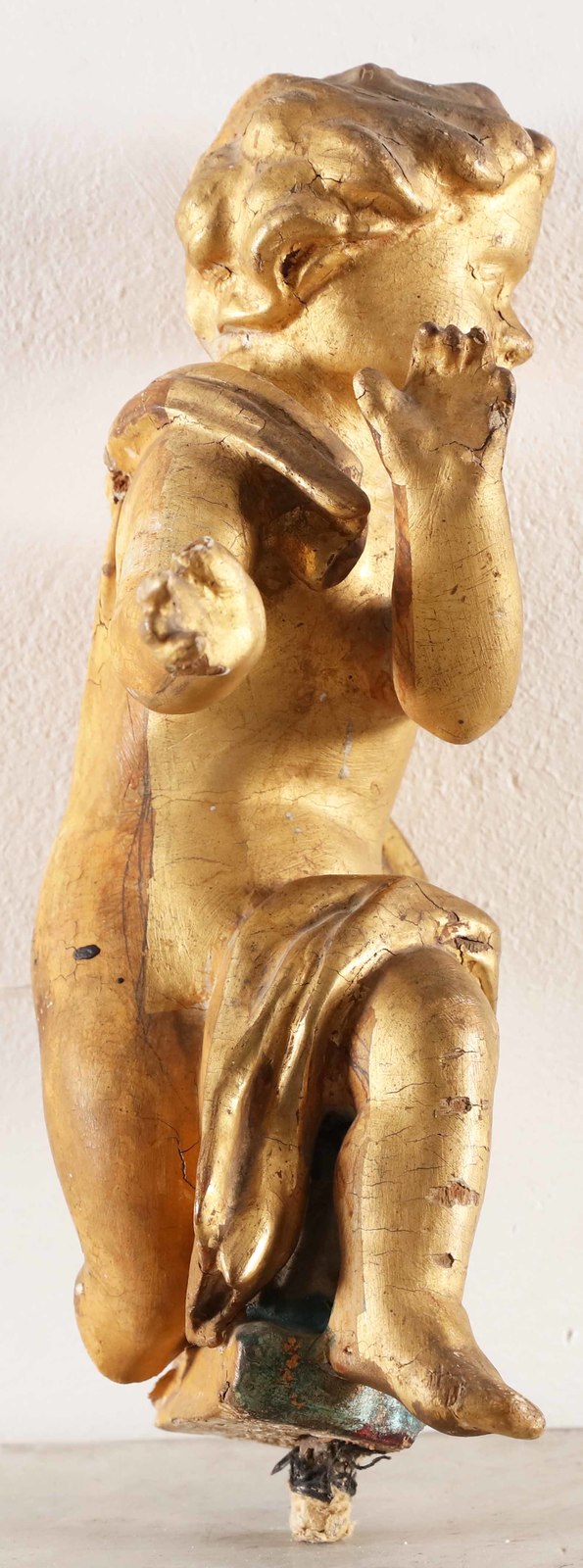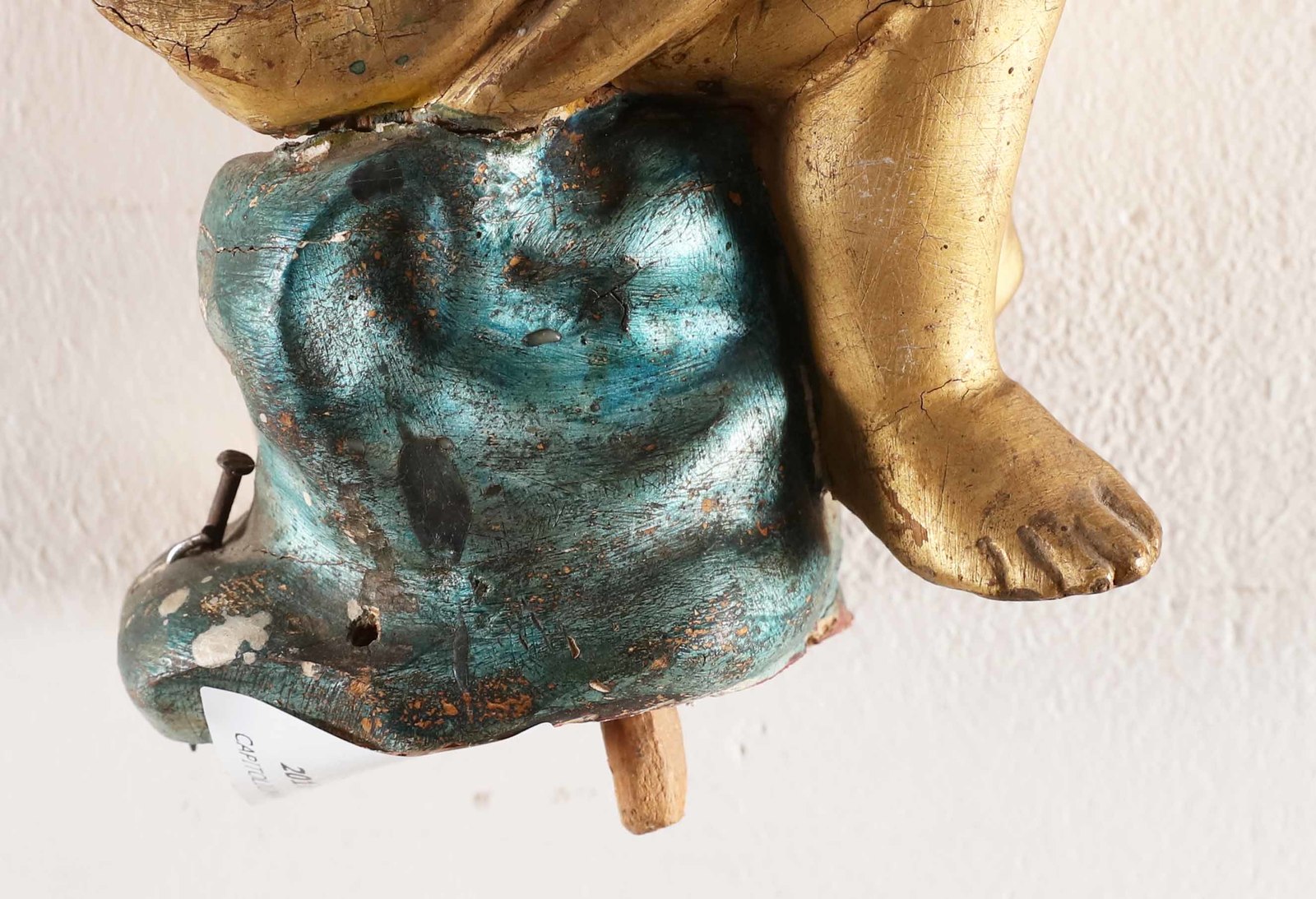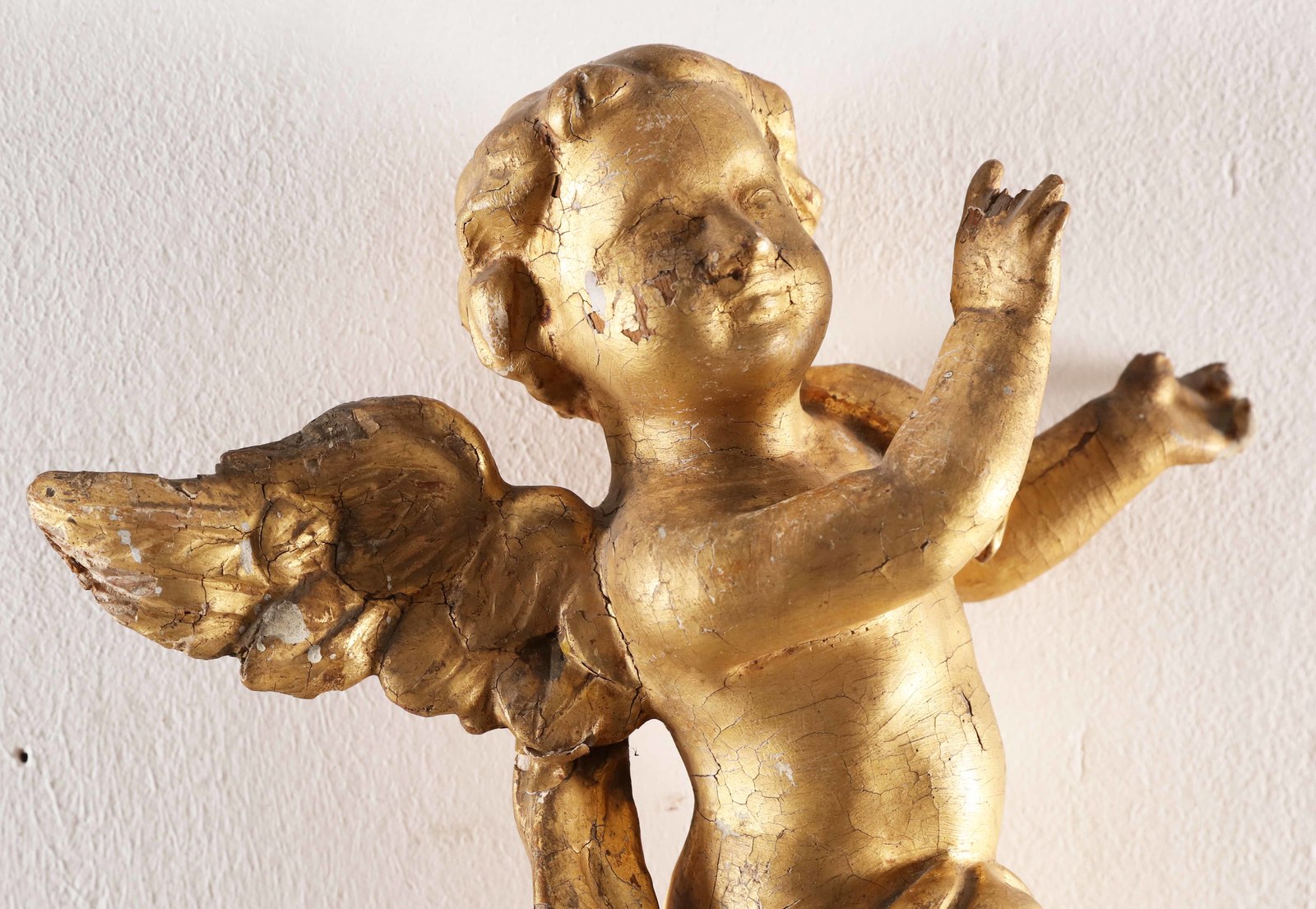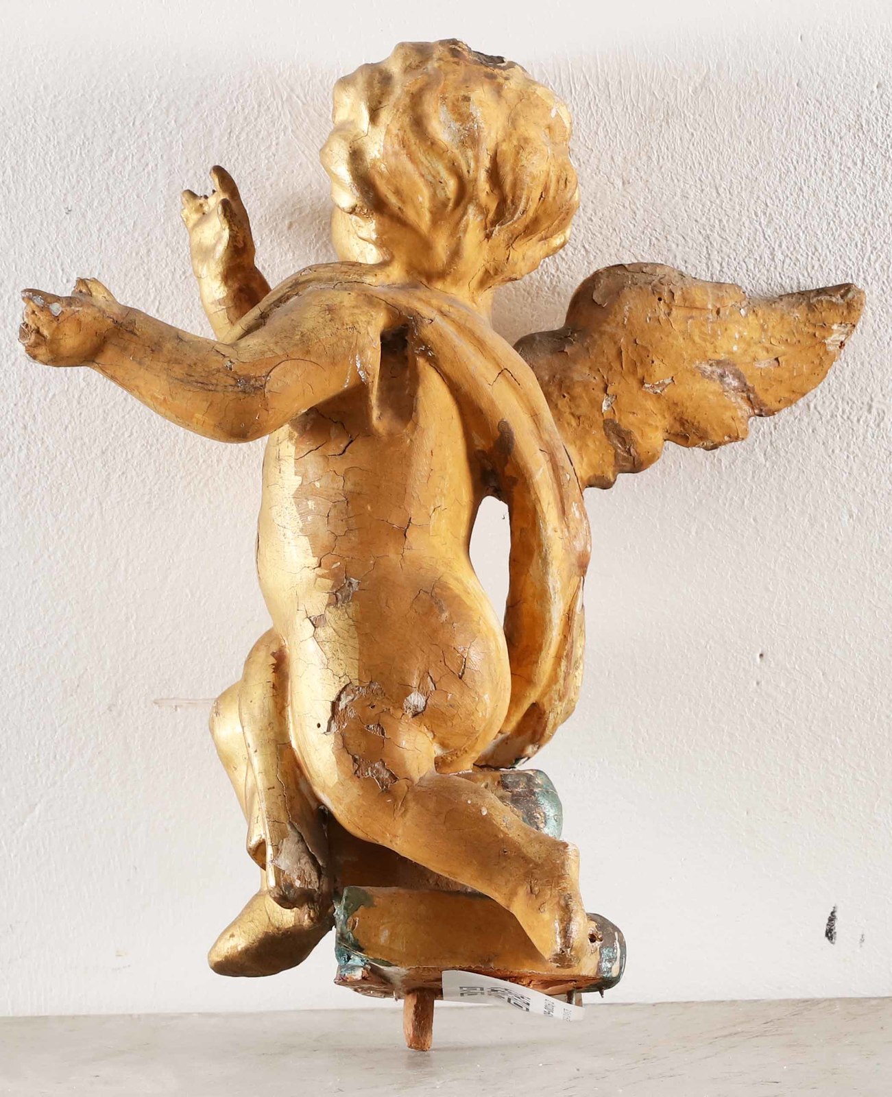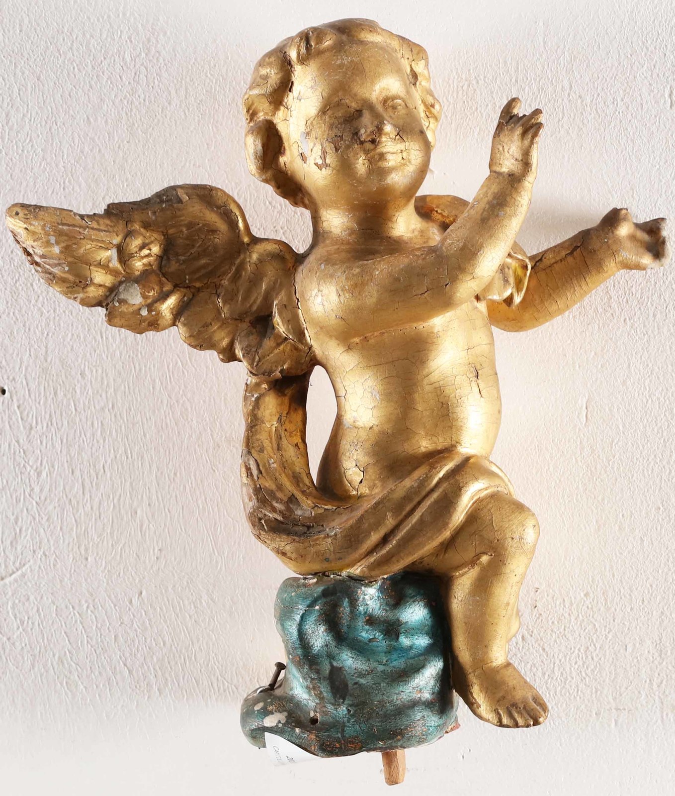 Lotto 19 | MANIFATTURA DEL XVIII SECOLO Coppia di angeli alati in legno dorati. . Cm...