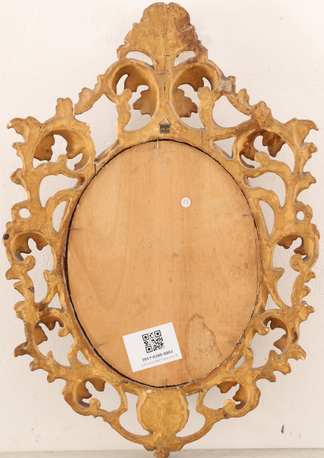 MANIFATTURA ITALIANA DEL XIX SECOLO Acquasantiera in argento in cornice dorata del XIX secolo. . Cm 33,00 x 47,00.