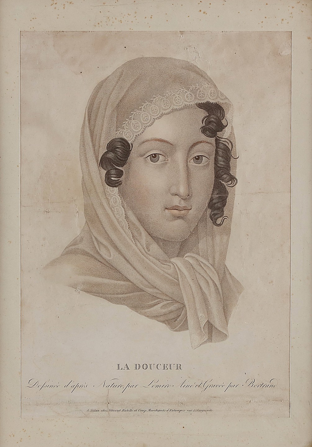 AUTORI VARI DEL XIX SECOLO La belle florentine, la Douceur, Emiba. Incisioni. Cm 35,00 x 45,50. Dimensione lastra: 38 x 27.5 cm. . Cornice presente
