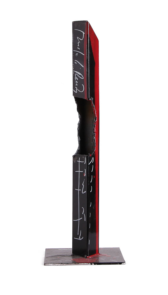 scultura in lega ferrosa smaltata cm. 47x15,5x15,5; firma sotto la base, pubblicata sul catalogo della mostra "Punti di rottura, Alessandro Caminiti", a cura di Piero Mainardis De Campo, tenutasi nel 2011 in occasione della 54° Biennale di Venezia presso la Venice Design Art Gallery, pagina 35