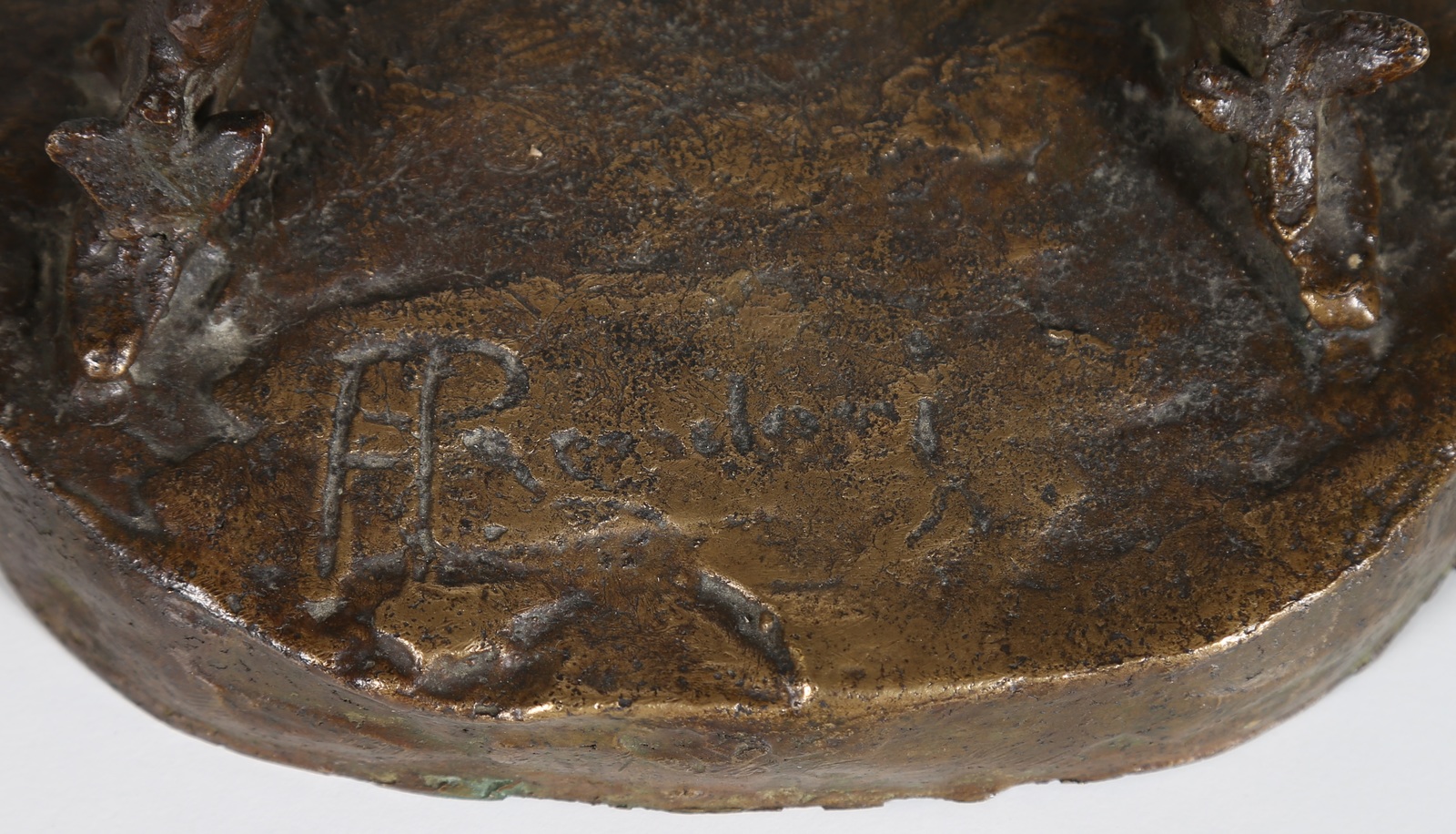 SCULTORE DEL XIX SECOLO Uomo che beve da una giara. bronzo. Cm 21,00 x 44,00 x 13,00. Firma indecifrabile alla base.