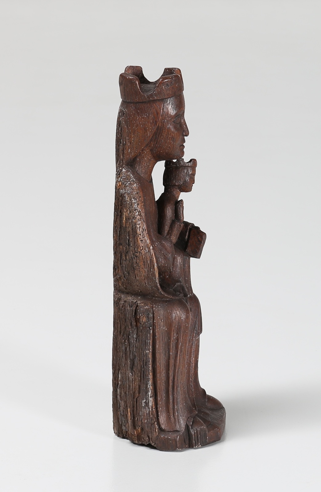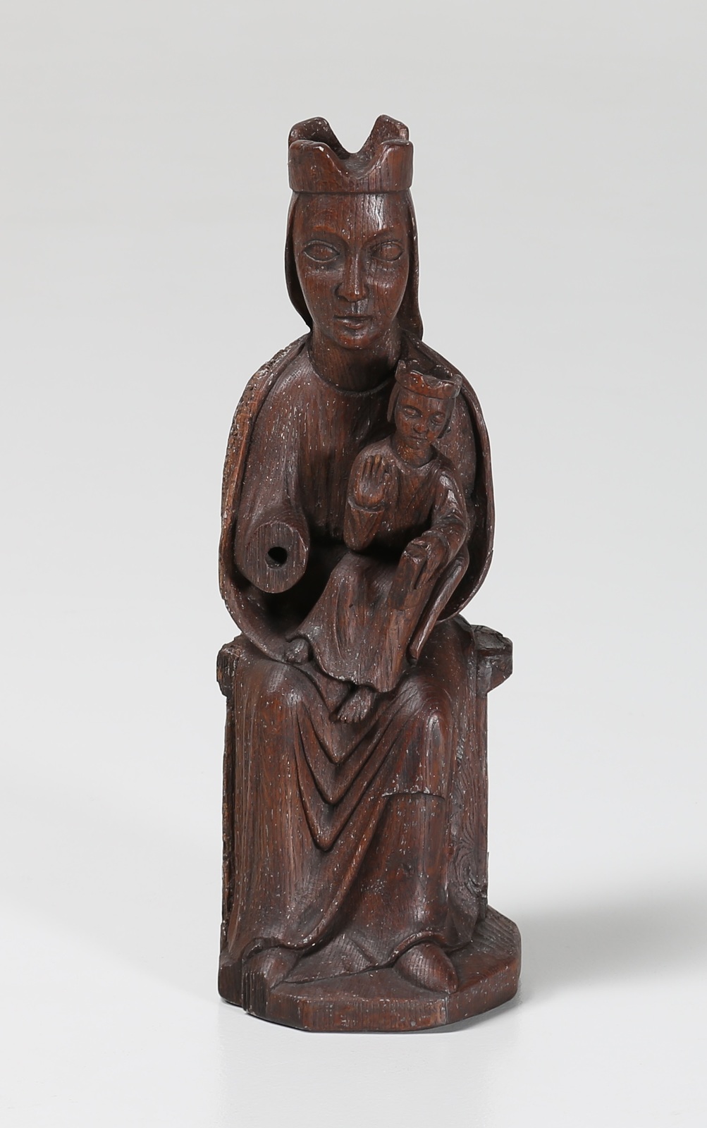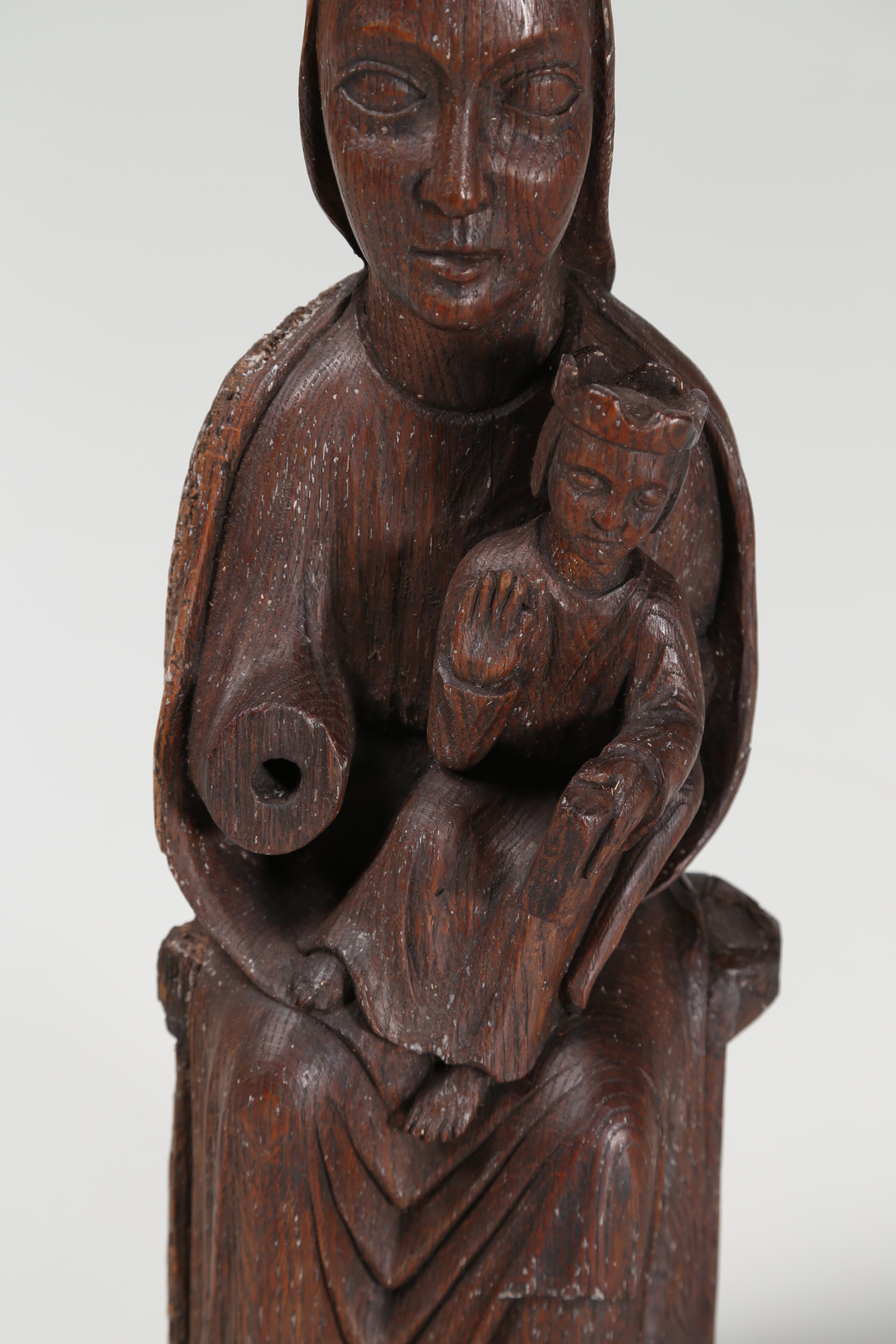 ARTISTA NORDEUROPEO DEL XV SECOLO Madonna con bambino in legno scolpito. . Cm 20,00 x 57,00 x 17,00. Tracce di policromia, difetti e mancanze.