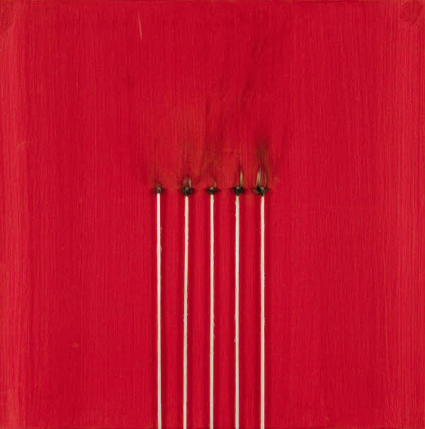 Bernard Aubertin - Dessin de Feu – 2010 - fiammiferi bruciati su tela cm. 50x50. Autentica dell’artista su foto. Firma sul retro