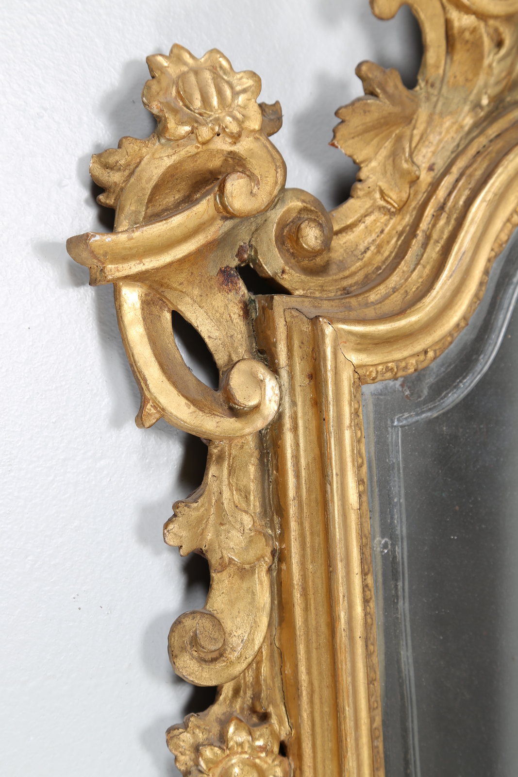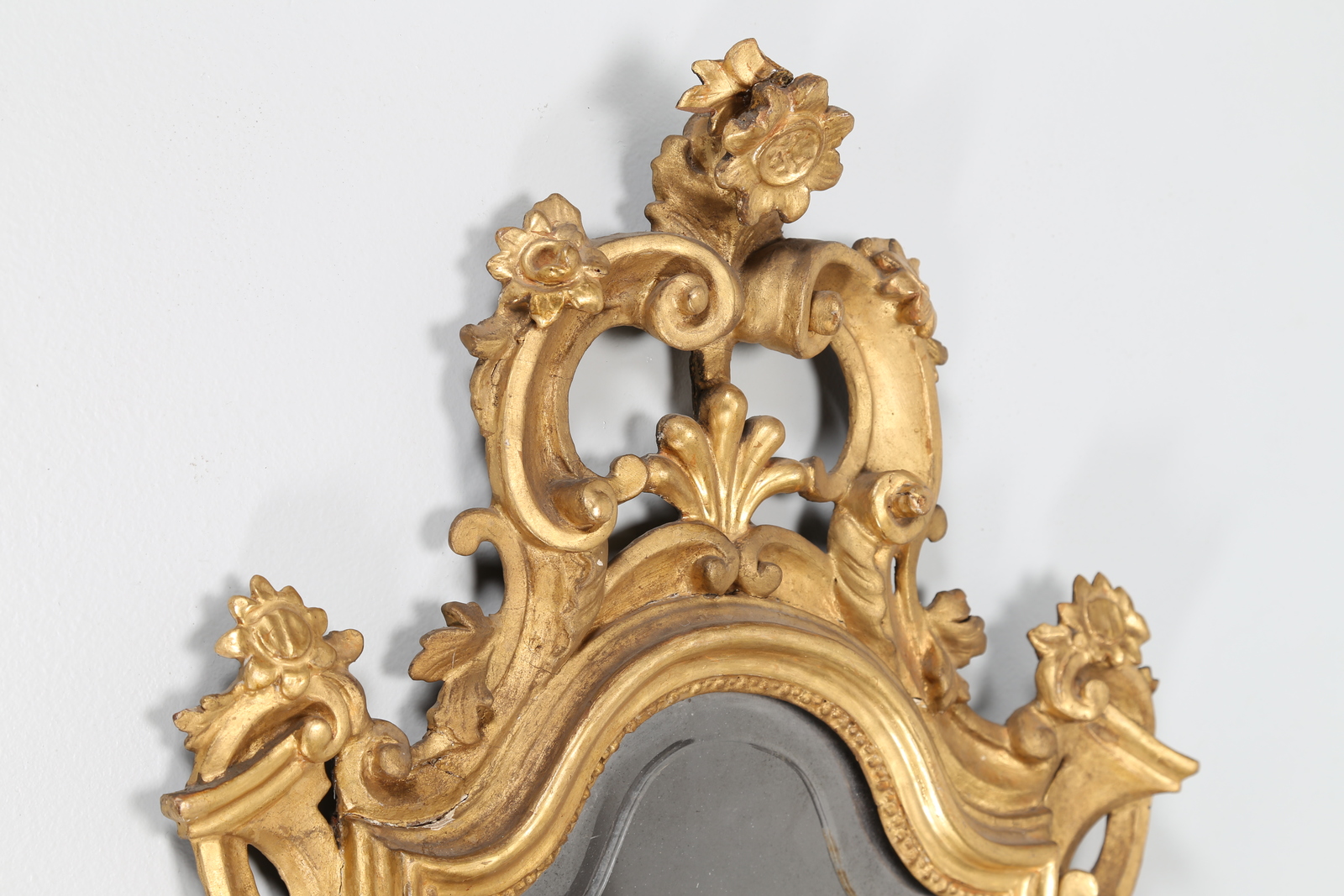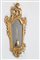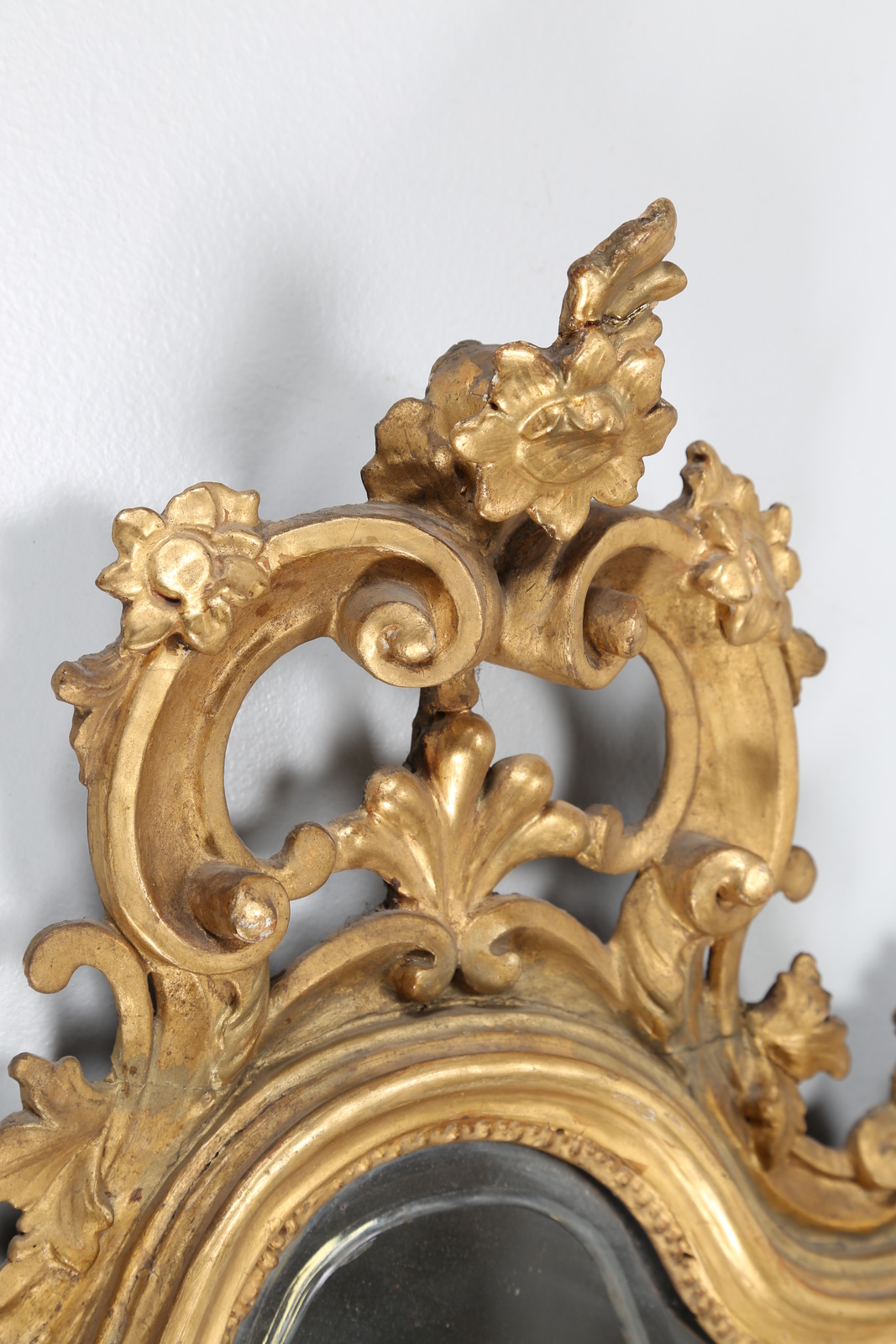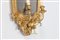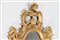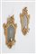 MANIFATTURA VENETA DEL XVIII SECOLO Coppia di lumiere a due fiamme intagliate a motivi rocaille e dorate, specchi decorati con figure classiche. . Cm 45,00 x 80,00.