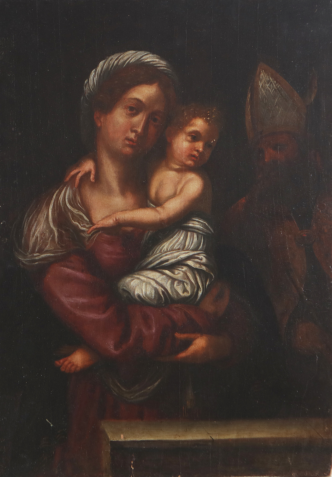 ARTISTA DEL XVI SECOLO Madonna con bambino. Olio su tavola. Cm 37,00 x 53,00.