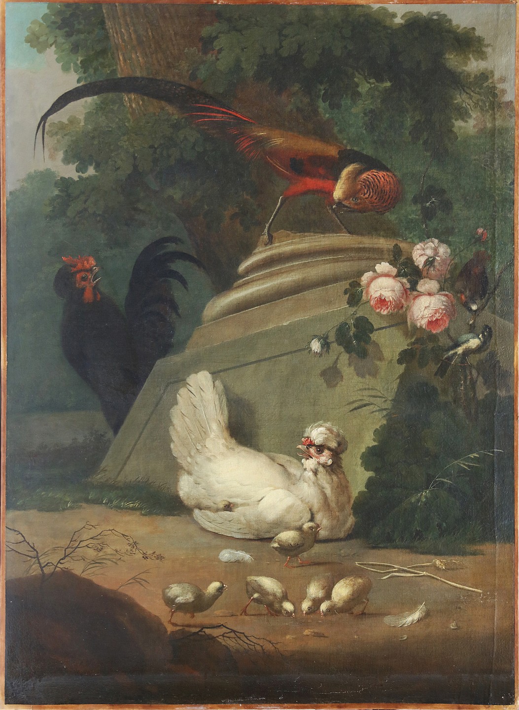 DE HONDECOETER MELCHIOR (1636 - 1695) Seguace di. Paesaggio con volatili. Olio su tela . Cm 131,00 x 96,00. Tracce di firma in basso a sinistra. Cornice presente