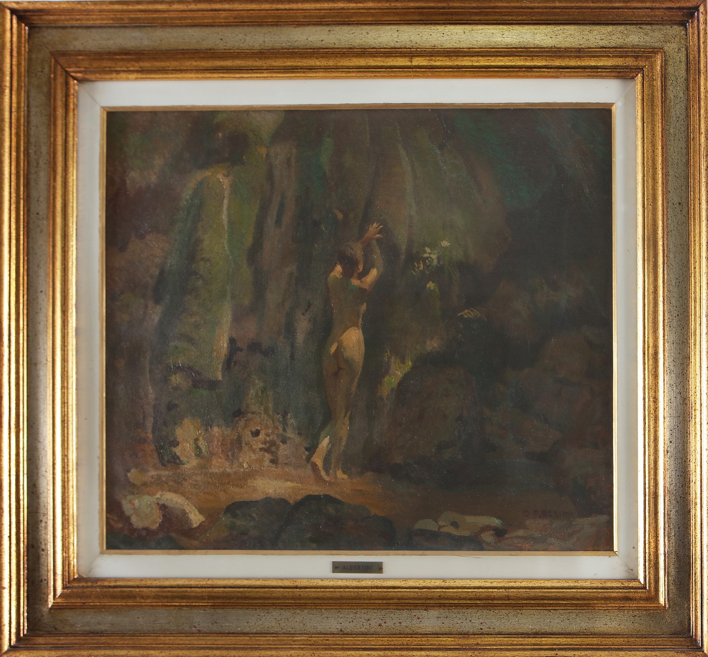 ALBERTINI ORESTE (1887 - 1953) Nudo in un paesaggio. Olio su tela . Cm 52,00 x 43,00. Firma in basso a destra. Cornice presente