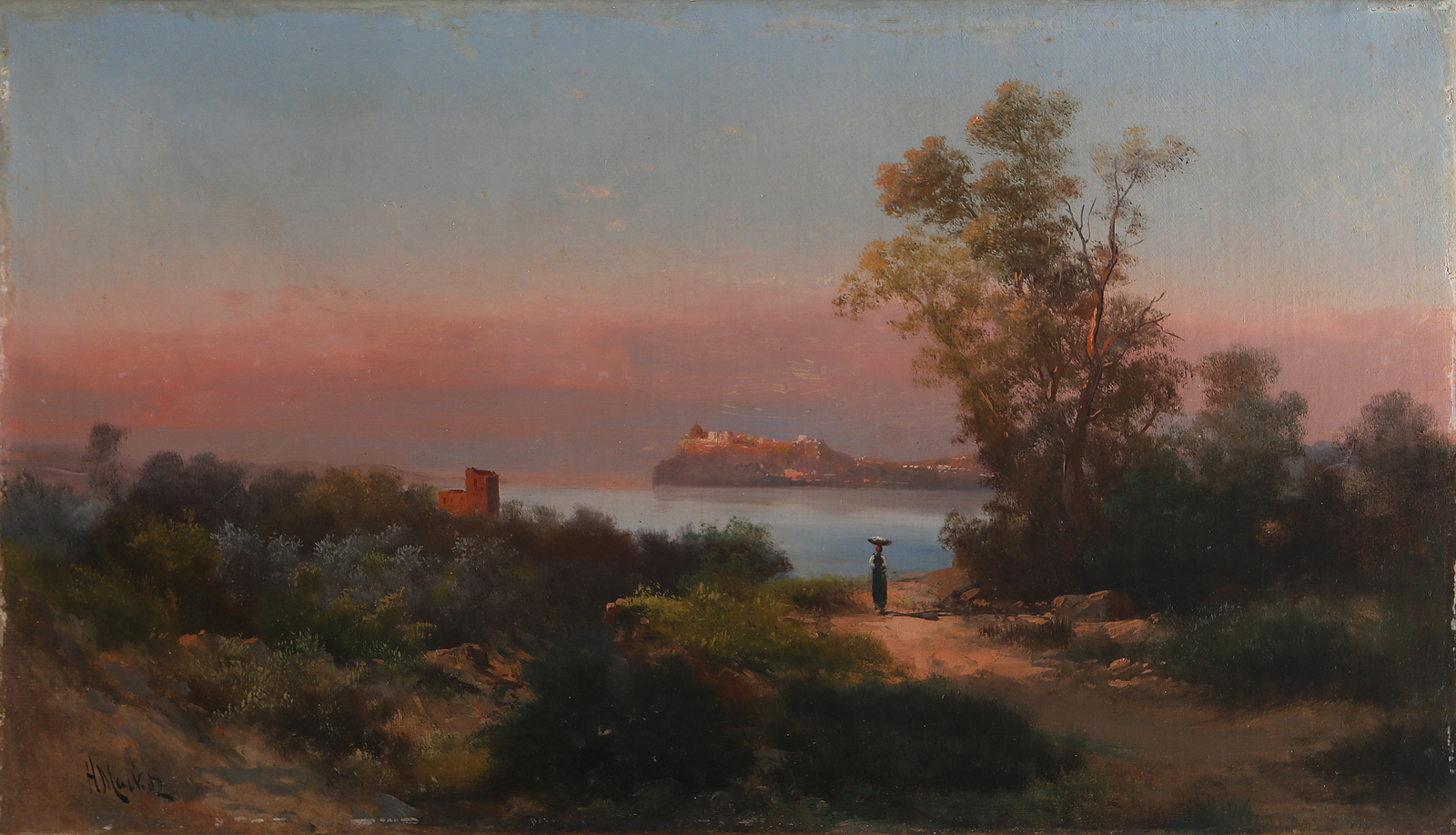 Lotto 338 | MARKÒ HENRY (1855 - 1921) Paesaggio con promontorio. Olio su tela . Cm 70,00...