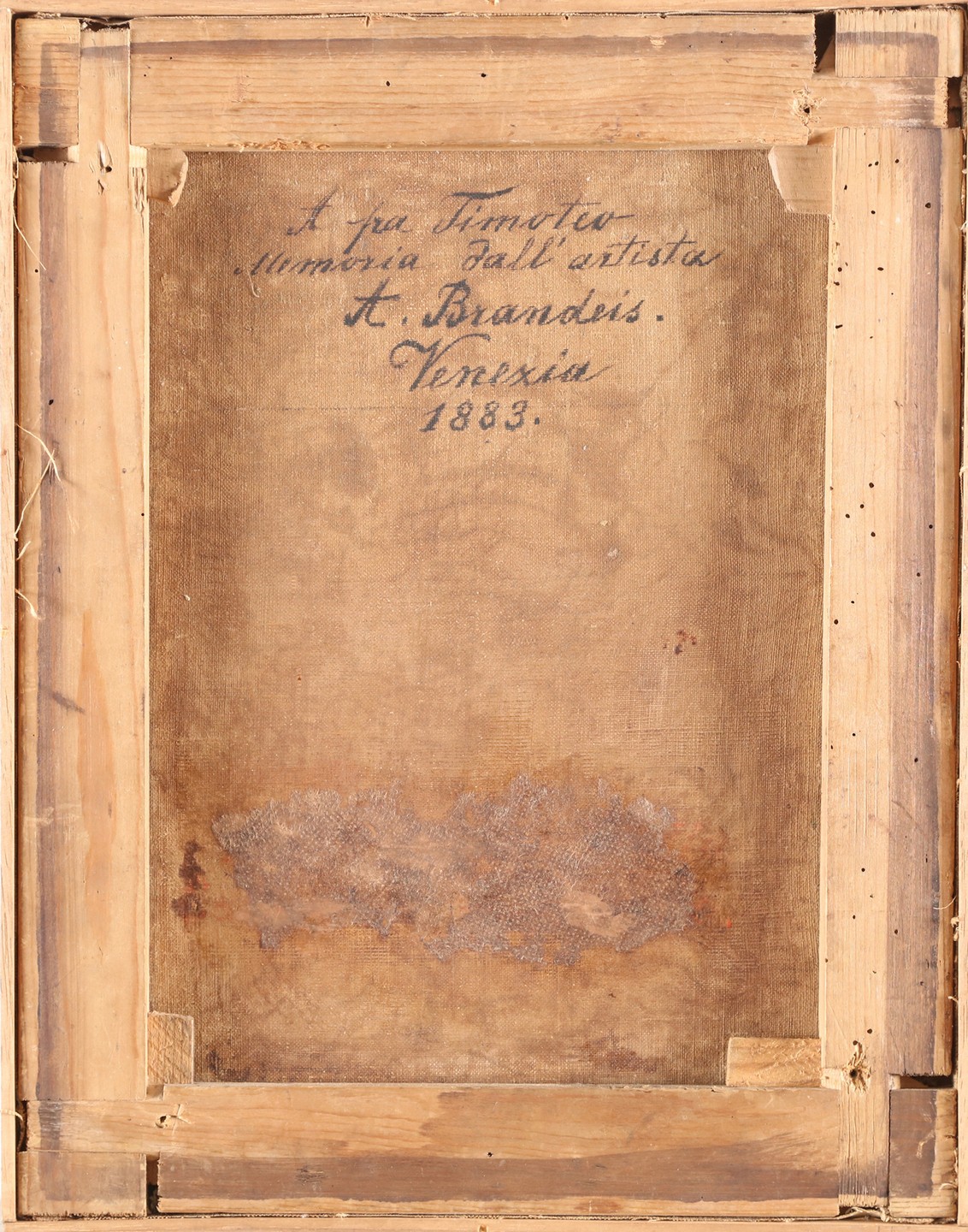 BRANDEIS ANTONIETTA (1849 - 1920) Frà Timoteo. 1883. Olio su tela . Cm 31,50 x 40,00. In prima tela, al retro riporta la scritta coeva: "A Frà Timoteo memoria dall'artista A. Brandeis. Venezia 1883".