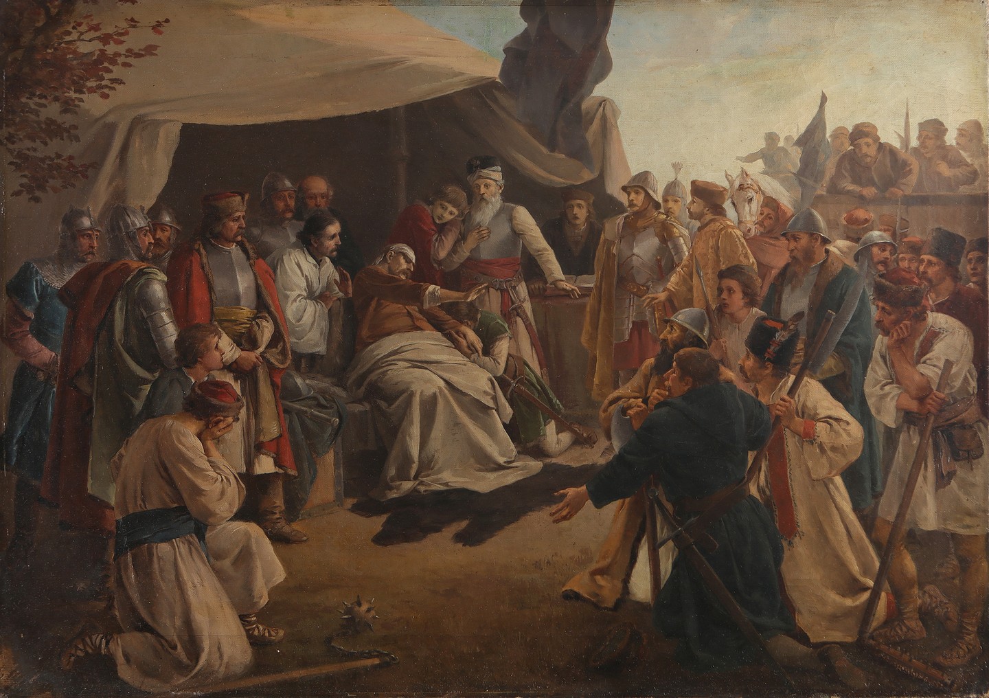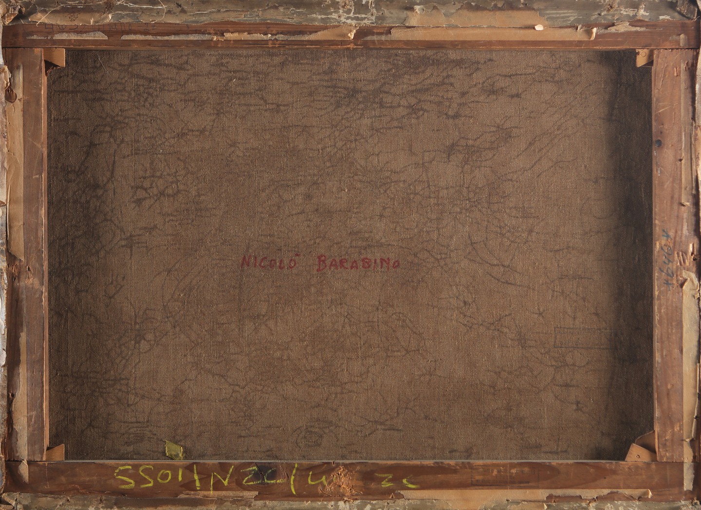 BARABINO NICCOLO' (1832 - 1891) Scena militare. 1852. Olio su tela . Cm 64,00 x 46,00. Firma e anno in basso a destra. Al retro riporta scritta in rosso Niccolò Barabino. Cornice presente