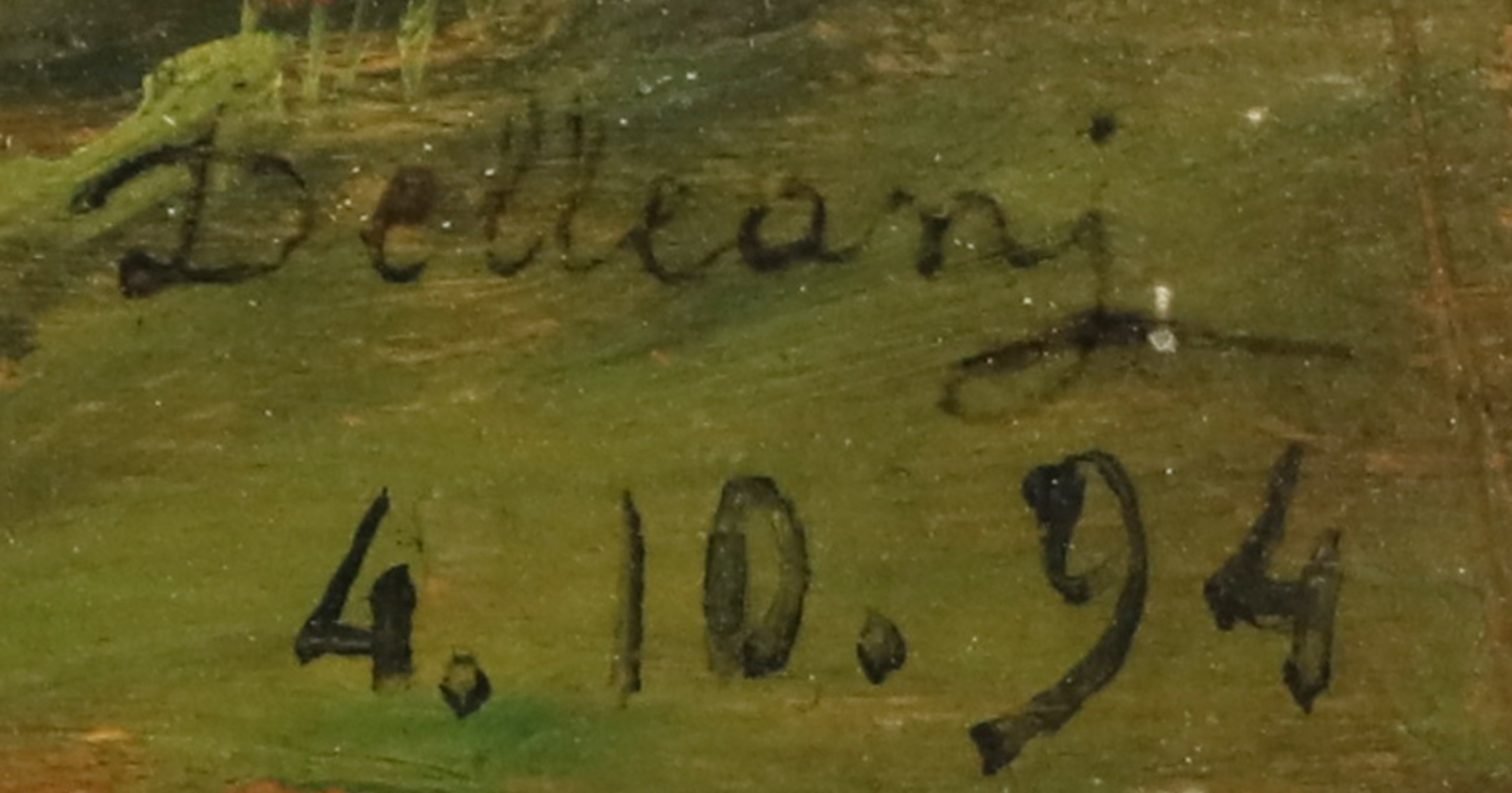 DELLEANI LORENZO (1840 - 1908) Il Mucrone sotto la neve. Olio su tavola. Cm 31,50 x 44,00. Firmato Delleani e datato 4-10-94 in basso a destra. Titolo a matita al retro e firma. Provenienza Galleria Bottisio, Torino. Galleria Perazzone, Biella. Galleria Garabello, Biella. Collezione privata, Roma. Bibliografia Angelo Dragone, Delleani: La vita, l'opera e il suo tempo, Cassa di Risparmio di Biella, Stamperia Artistica Nazionale, 1973, n 1094, tavola 193. Cornice presente