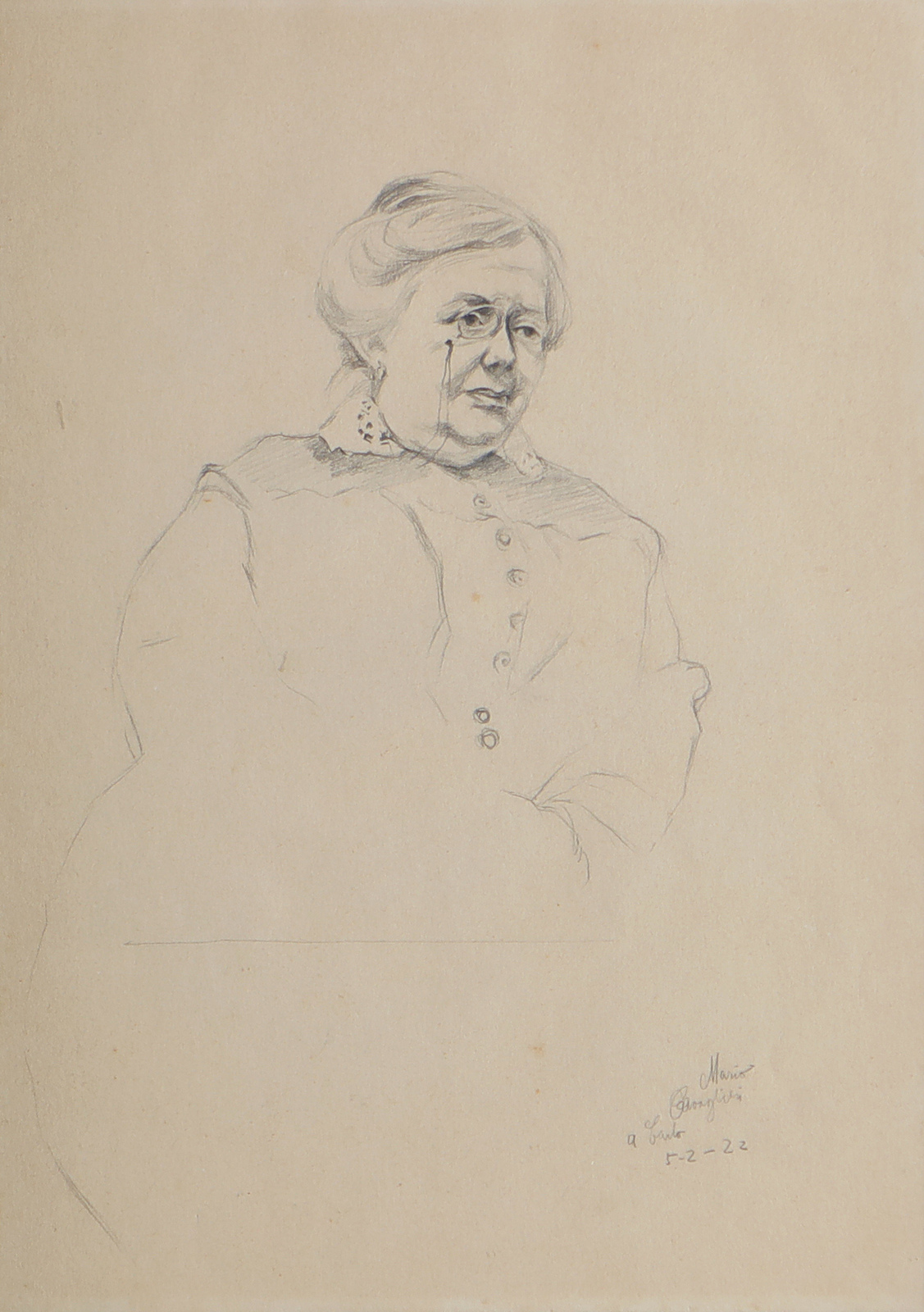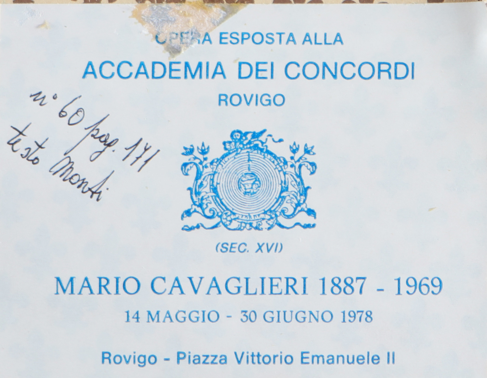 CAVAGLIERI MARIO (1887 - 1969) Ritratto della signora Marcocchia - Olivotti. 1922. Matita su carta. Cm 24,05 x 35,00. Firma, dedica ed anno in basso a destra. Al retro cartiglio dell'Accademia dei Concordi di Rovigo. Si tratta di un disegno preparatorio per il dipinto"Ritratto della signora Marcocchia - Olivotti".