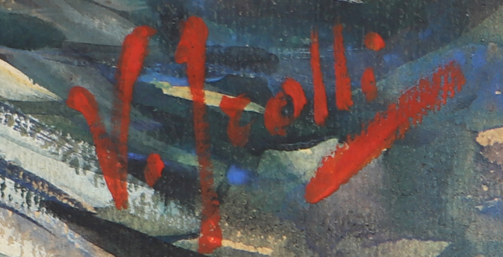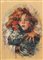 IROLLI VINCENZO (1860 - 1942) Attribuito a. Bimba con galletto. Acquerello . Cm 31,00 x 41,00. Firma in basso a destra. Cornice presente