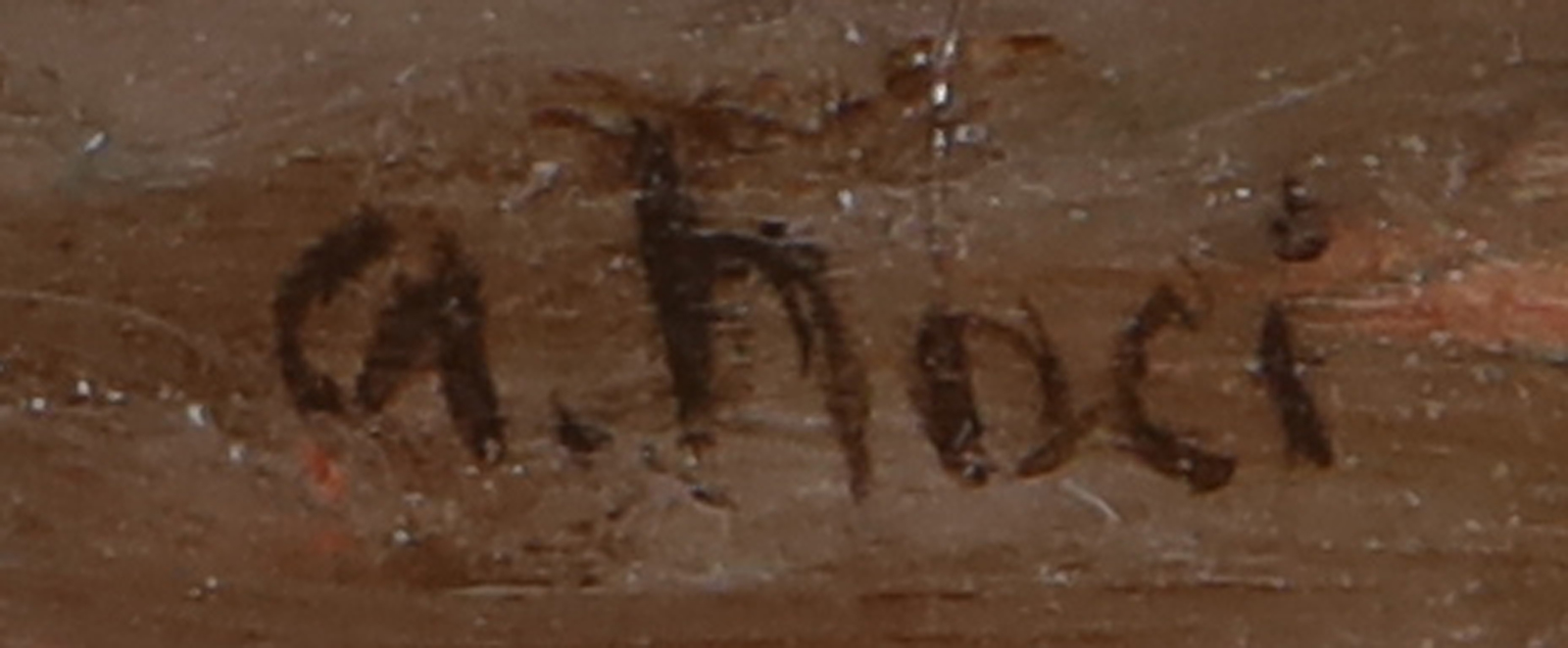 NOCI ARTURO (1874 - 1953) Attribuito a. Paesaggio romano con alberi. Olio su tavola. Cm 20,00 x 14,50. Firma in basso a sinistra. Cornice presente