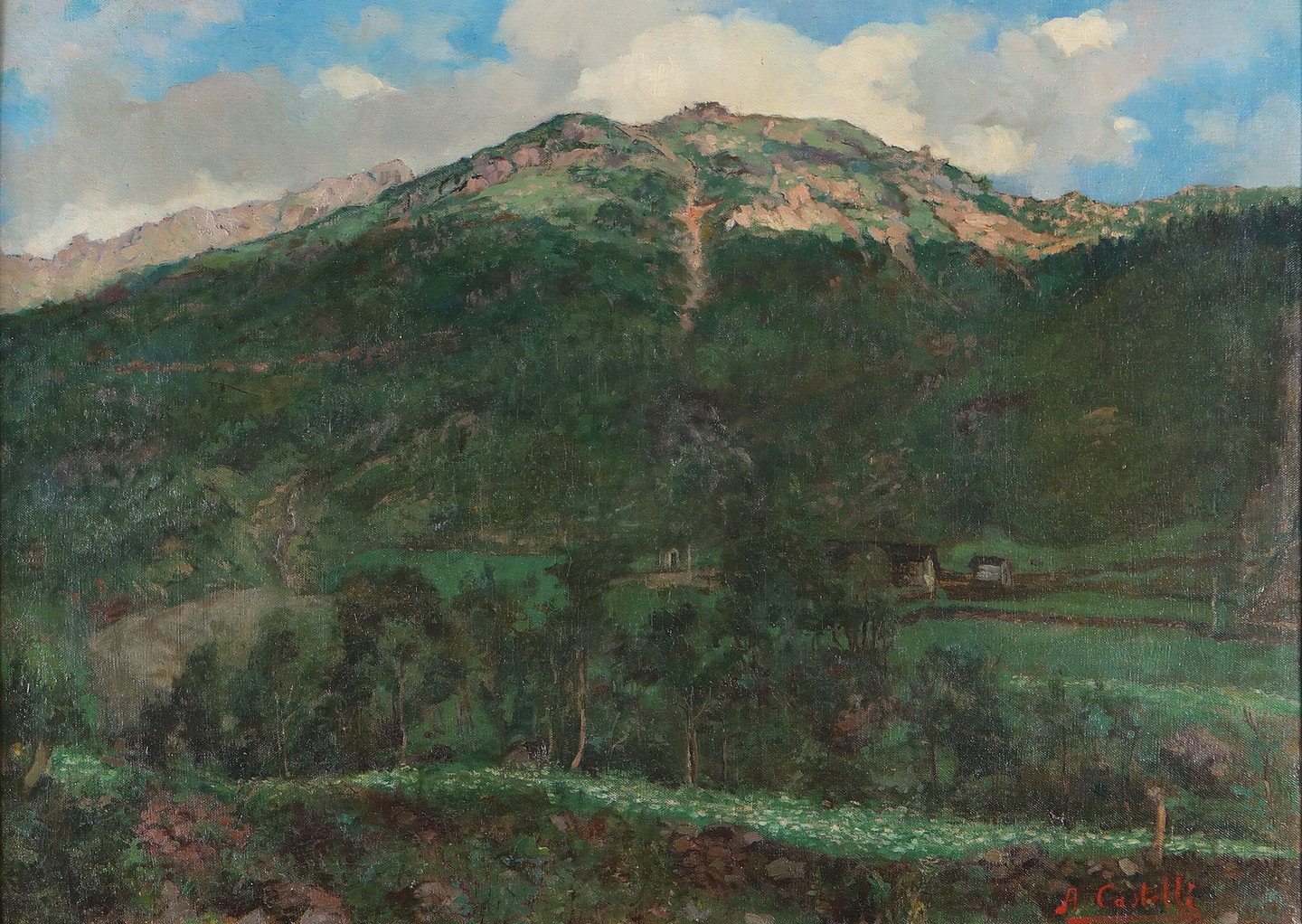 CASTELLI ARTURO (1870 - 1919) Dopo la tempesta. Olio su tela . Cm 95,50 x 69,50. Firma in basso a destra. Pubblicazioni: Francesco Filippini e la pittura bresciana dell'Ottocento a cura di Roberto Ferrari , Edizioni aab, Galleria aab, Brescia 18 Dicembre - 19 Gennaio 2000, pag.52. Cornice presente