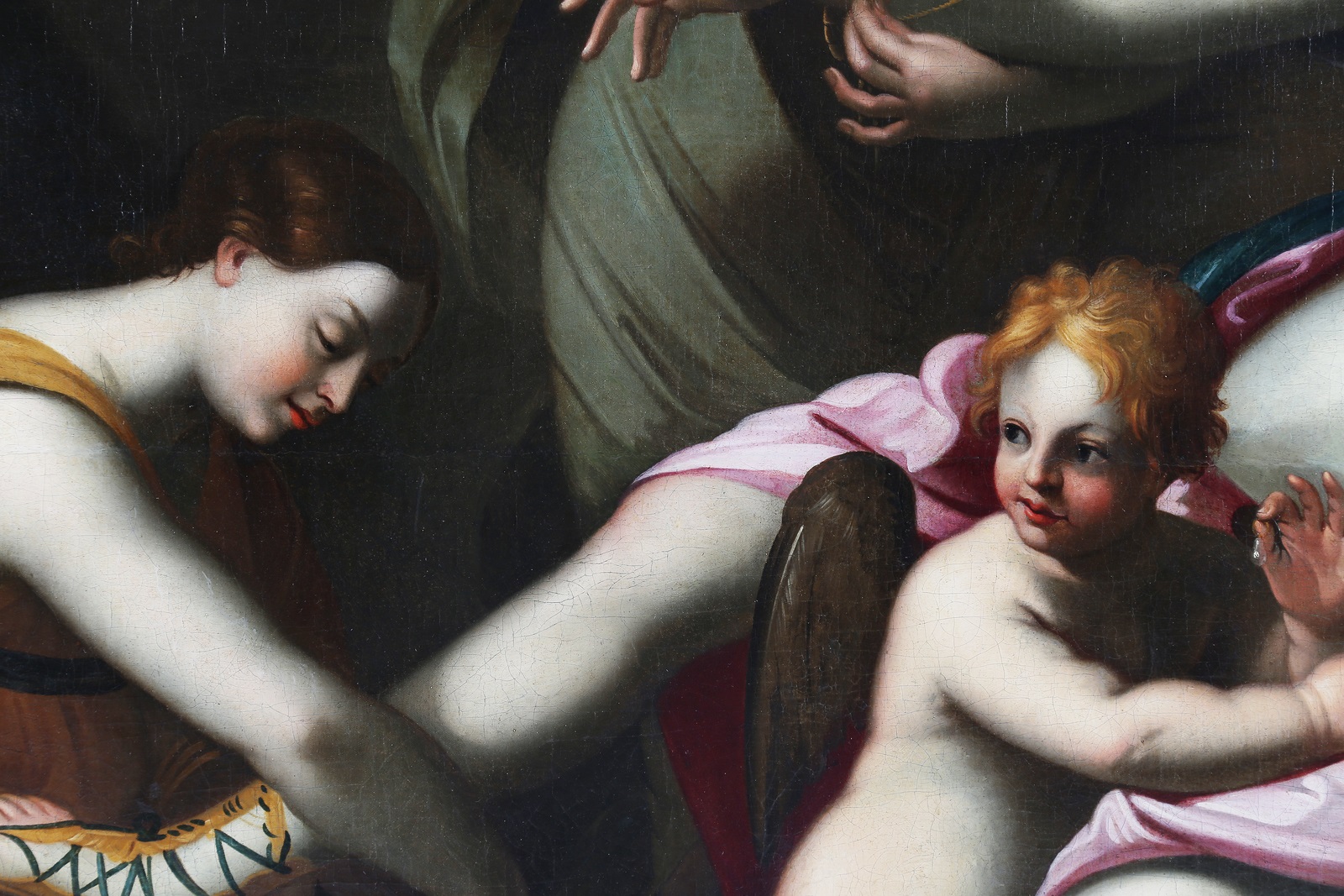ARTISTA EMILIANO DEL XVII SECOLO La vestizione di Venere. Olio su tela . Cm 150,00 x 190,00.