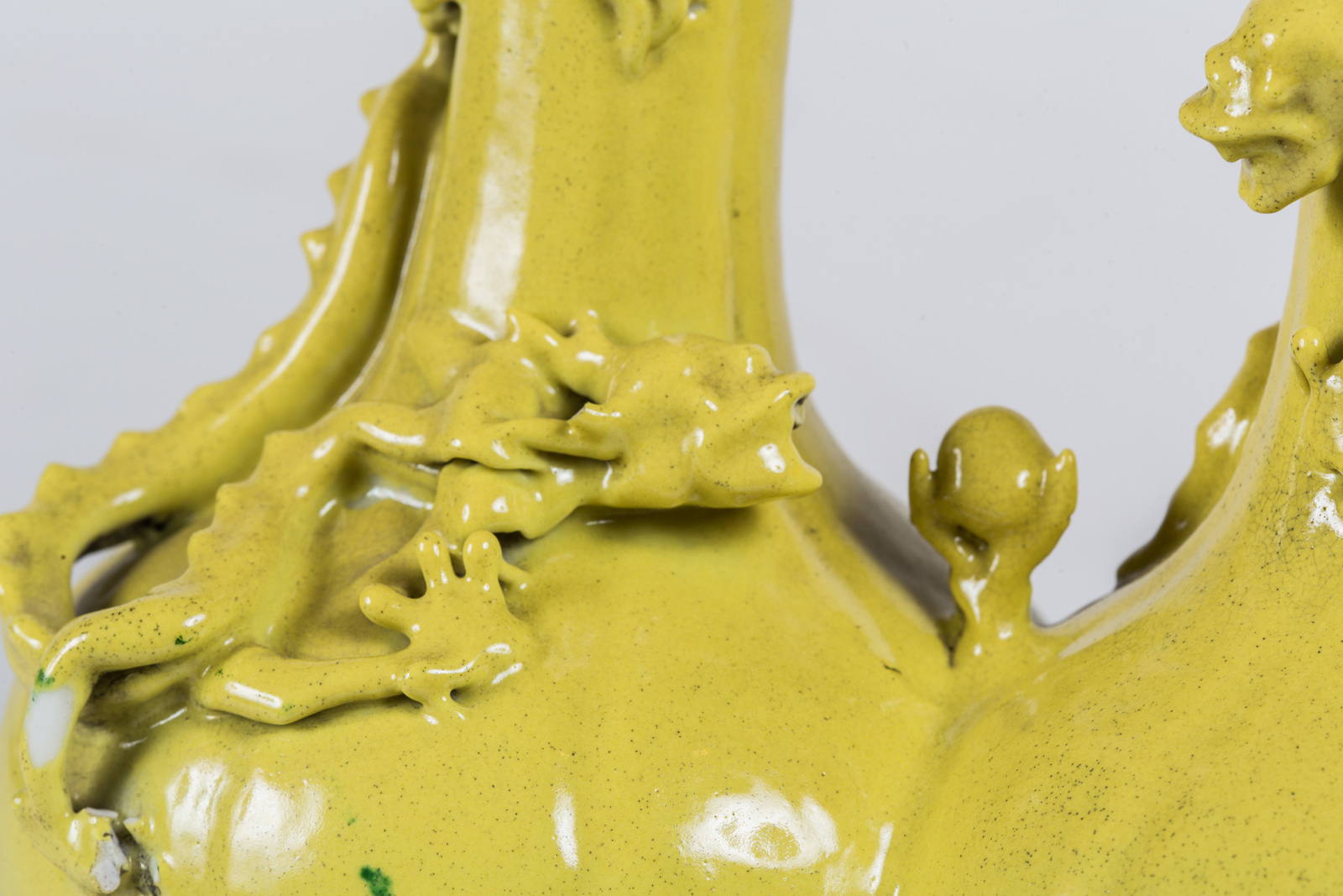 Arte Cinese Doppio vaso in porcellana invetriata di giallo