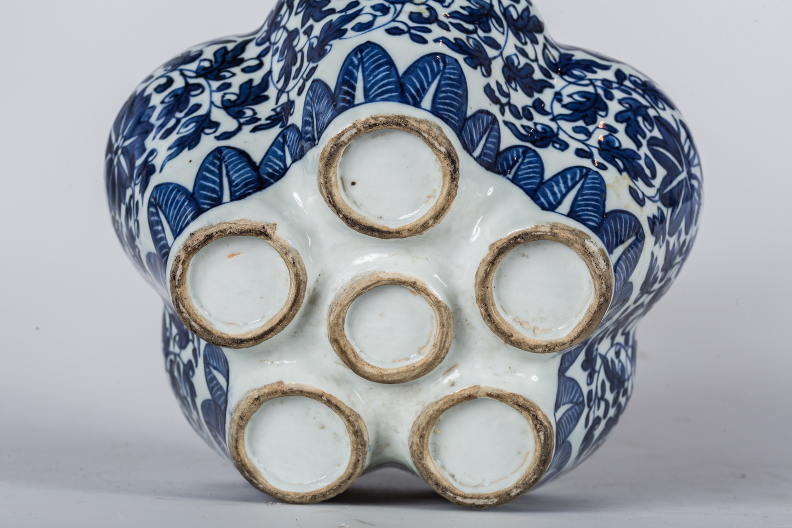 Chinese Art A blue and white porcelain flower holder vase China, Qing dynasty, 18th century . . Cm 17,50 x 26,00.
