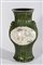 Chinese Art A green glazed lobed shaped vase painted with two reserves containing characters in landscapes