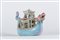 Cina, dinastia Qing, XIX secolo . -. Cm 25,50 x 14,00. Veliero in forma di dragone azzurro e rosa che trasporta una cabina con dei personaggi.