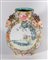 Cina, tardo XIX secolo . -. Cm 24,00 x 33,00. Vaso con ampia pancia globulare, decorato con due grandi riserve circolari, una dipinta con letterato, l'altra dipinta con Budhai e bambini, separate da millefiori su sfondo dorato. Doppia ansa in forma di cervi che si rifà al design cento cervi da cui il vaso mutua anche la caratteristica forma.