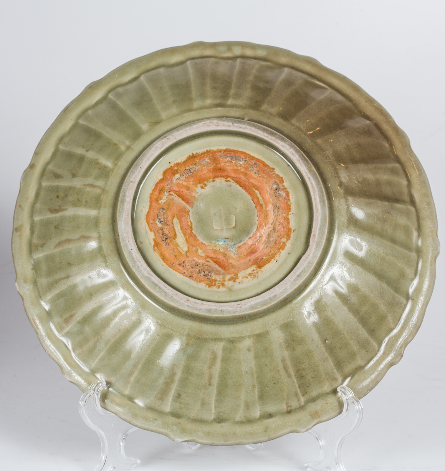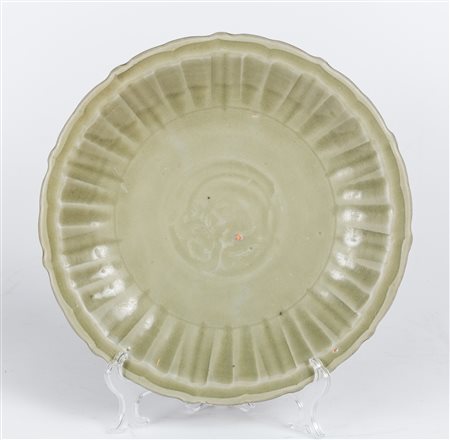Arte Cinese Piatto celadon con bordo foliato Cina, XIX-XX secolo . -. Cm...