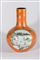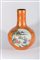 Chinese Art A massive porcelain vase decorated with gilded vegetal motifs over orange background, painted with three big reserves containing characters in landscape and bearing a red Qianlong seal mark at the base