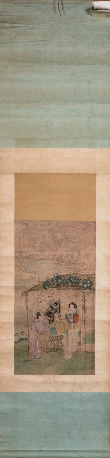 Arte Cinese Dipinto raffigurante delle dame in esterno
