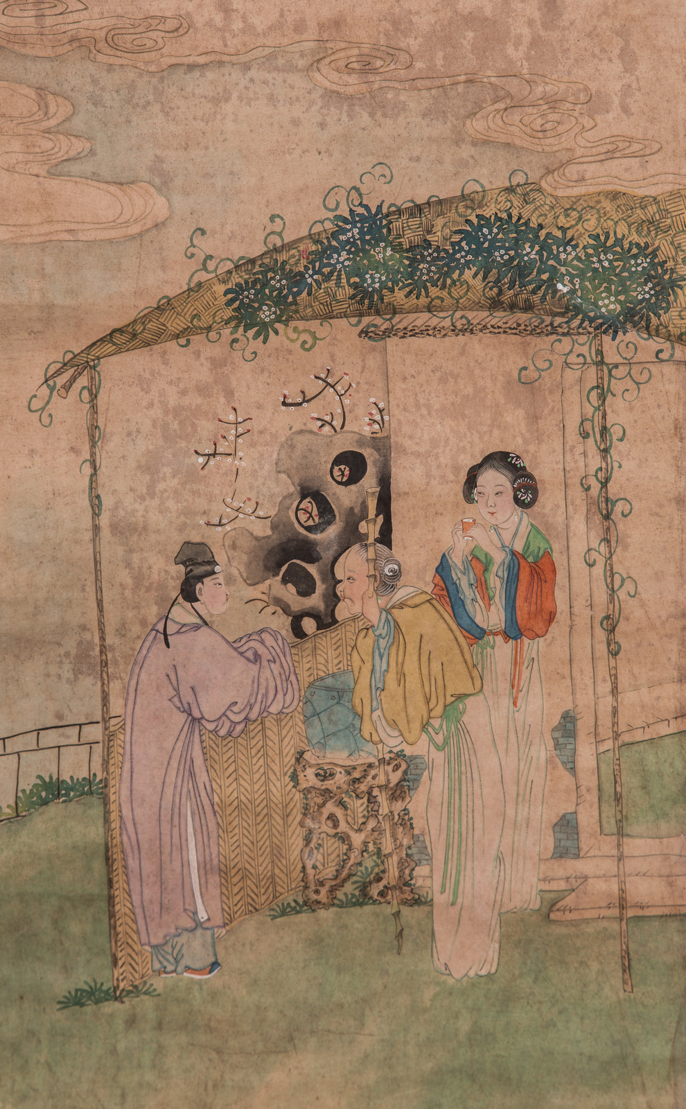 Chinese Art A painting on rice paper depicting ladies at leisure
