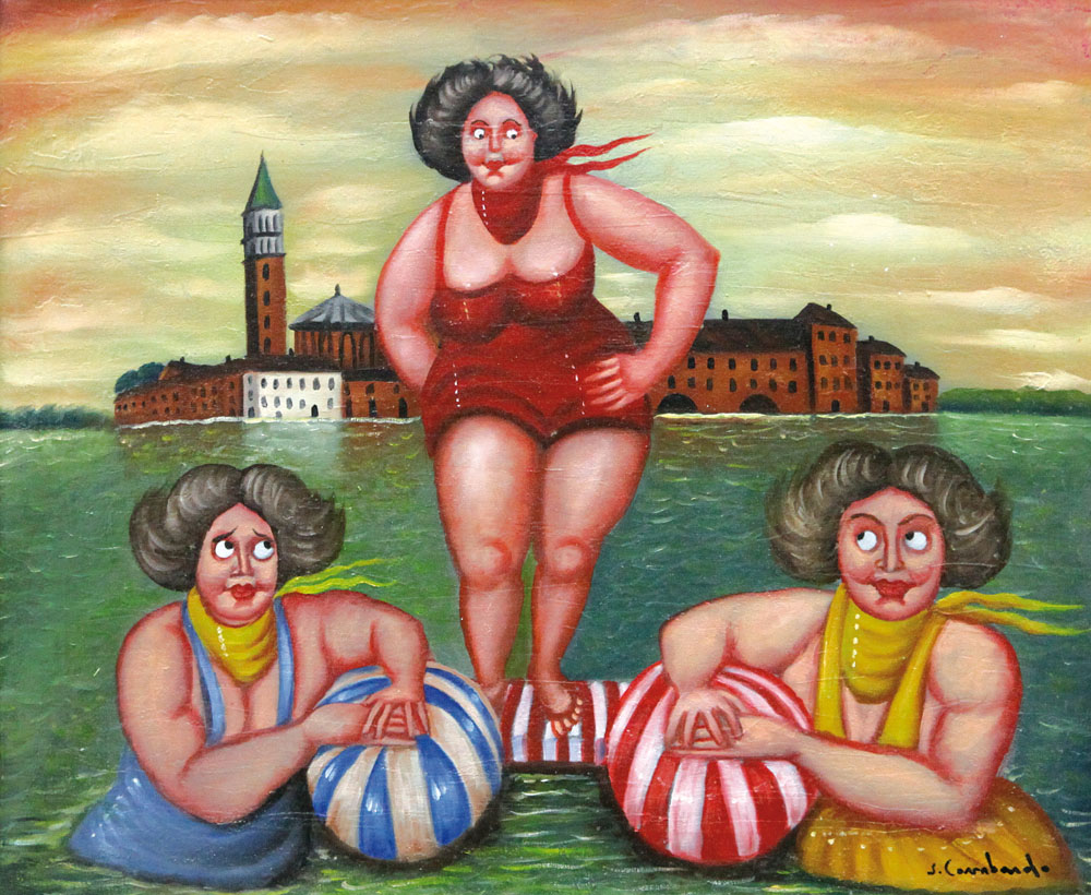 SALVO LOMBARDO Favara (Ag) 1948 Tre grazie Olio su tela cm. 50x60, firma in...